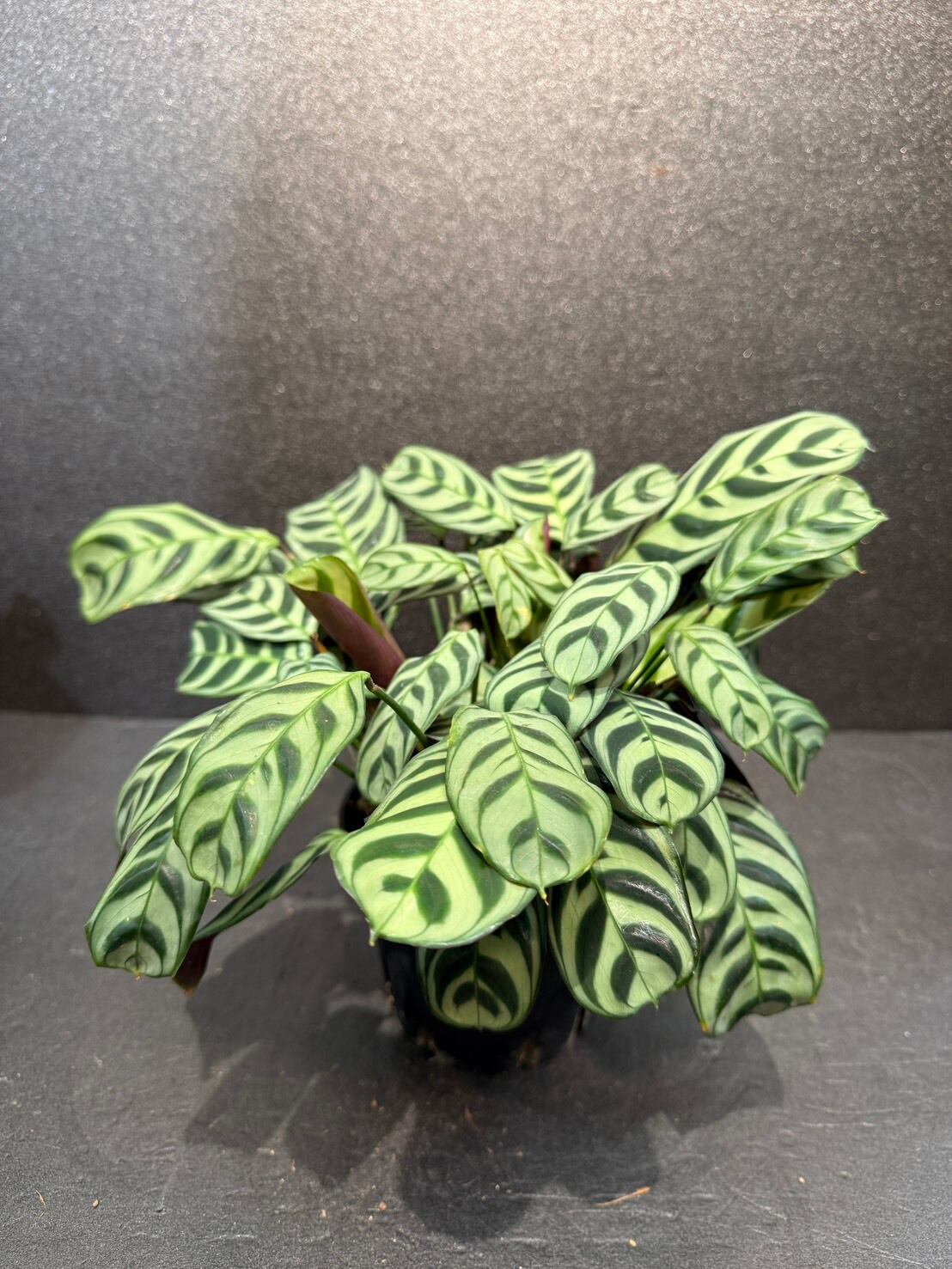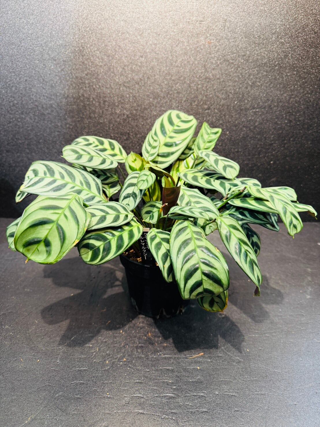 クテナンテ ブルレーマルクシーの葉は、白緑色の中に、矢羽根のような暗緑色の模様が目を引く葉のシルバーがかった爽やかな色合いが魅力的です。