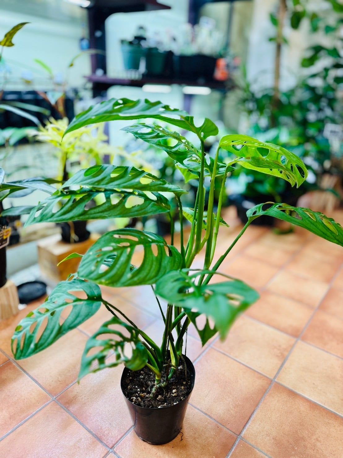 モンステラ エスケレートは、葉の縁部分に切れ込みが入らない代わりに、驚くほど大きく細長い穴が空く所が特徴の植物です。
