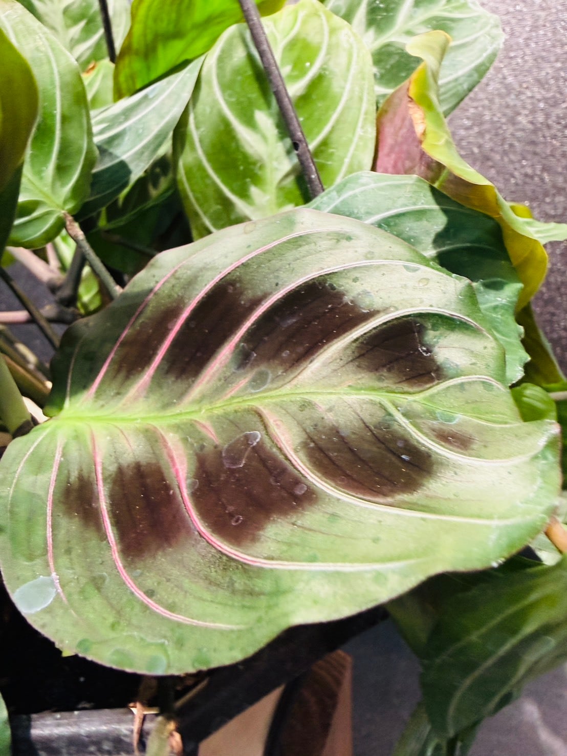 マランタ・キャットマスターシュは、濃い褐色とグリーンの独特な葉模様が特徴的なマランタの仲間です。