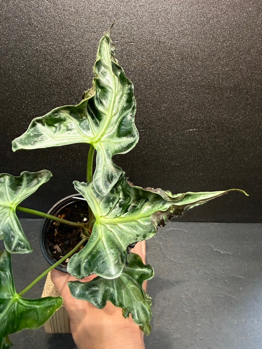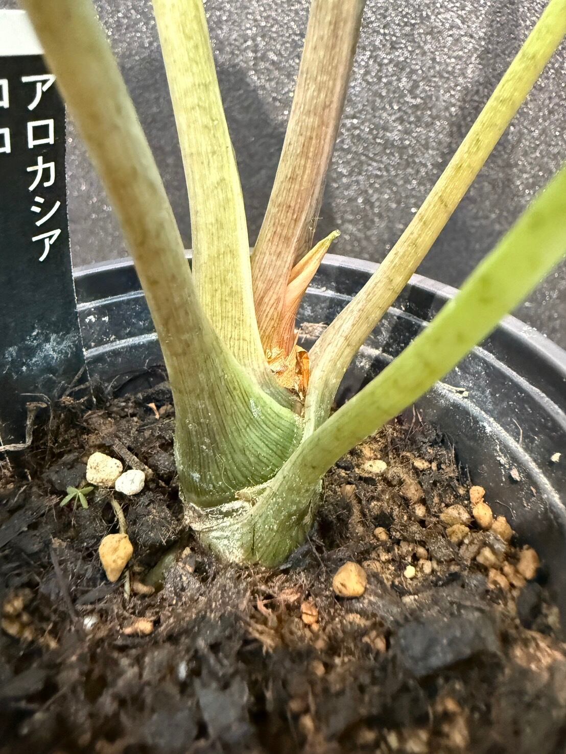 この「クシュクシュ」とした葉が、他のアロカシアにはない個性的な魅力となっています。