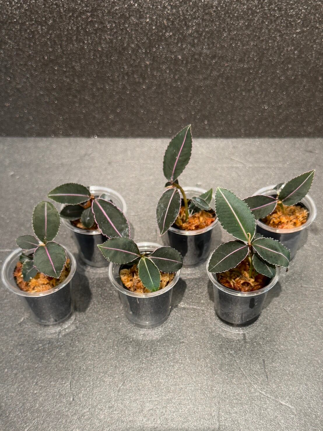 ラビシア・プミラは、緑色の地に淡いピンクの葉脈が際立ち、品種によって模様や色合いが異なります。