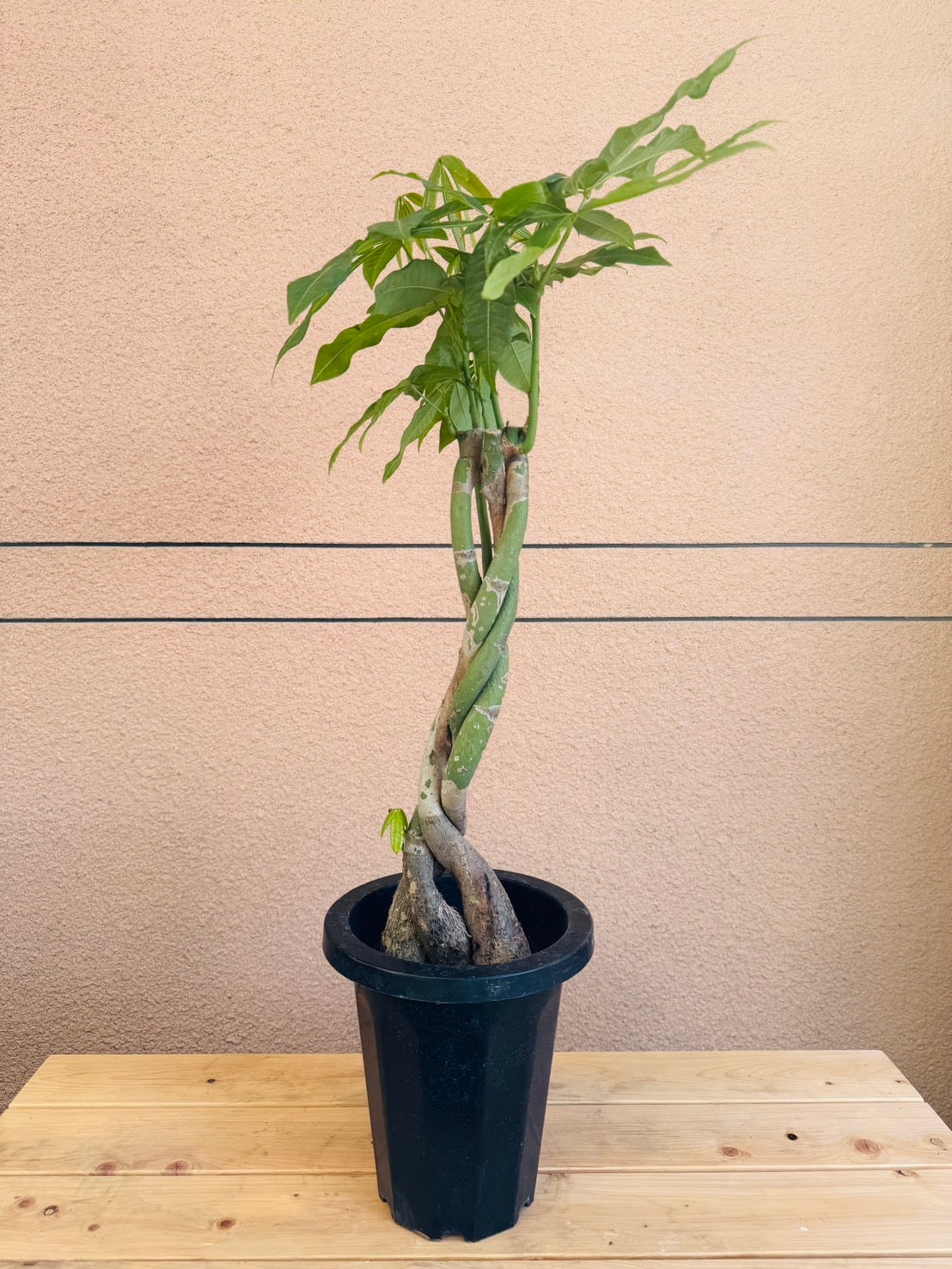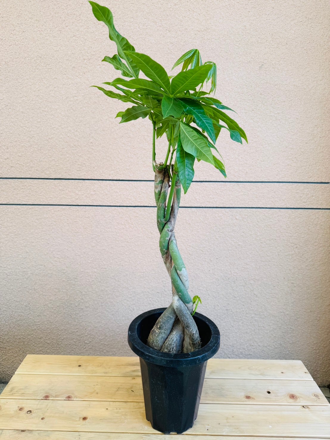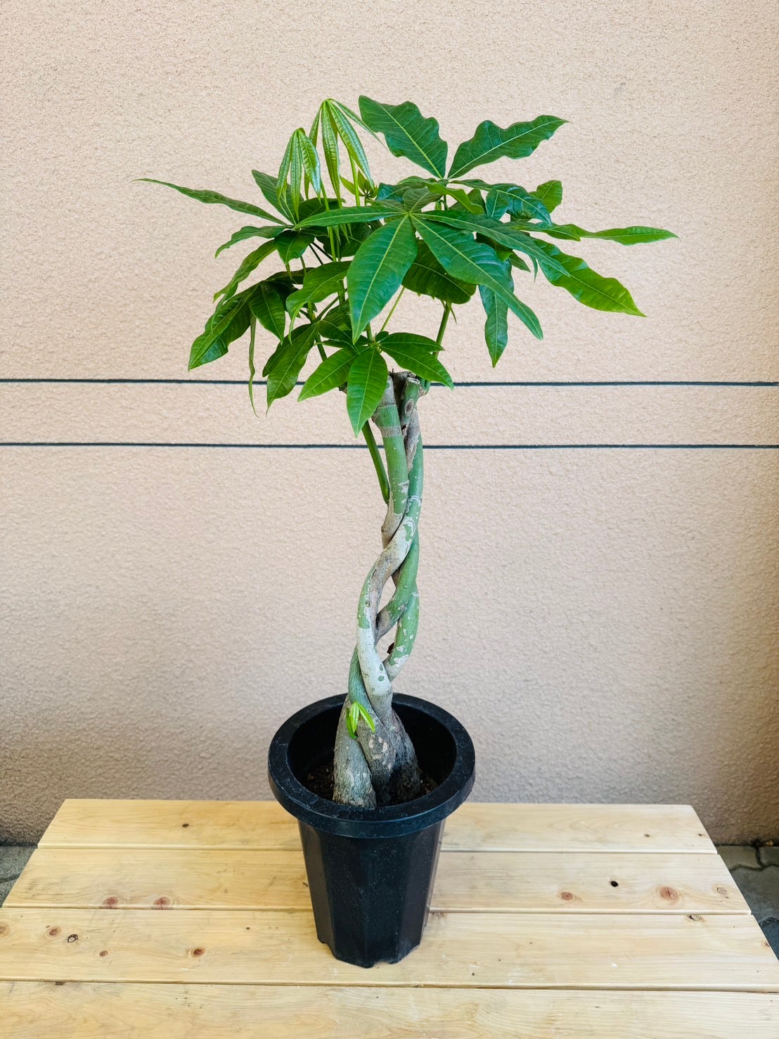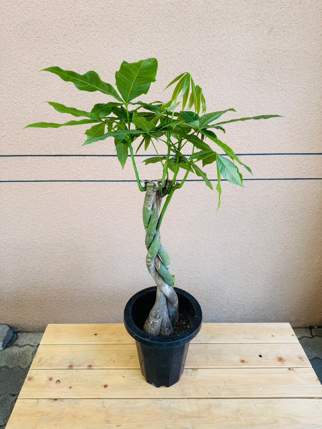 パキラは、一年を通して光沢のある瑞々しい5枚1組の葉を広げる植物です。