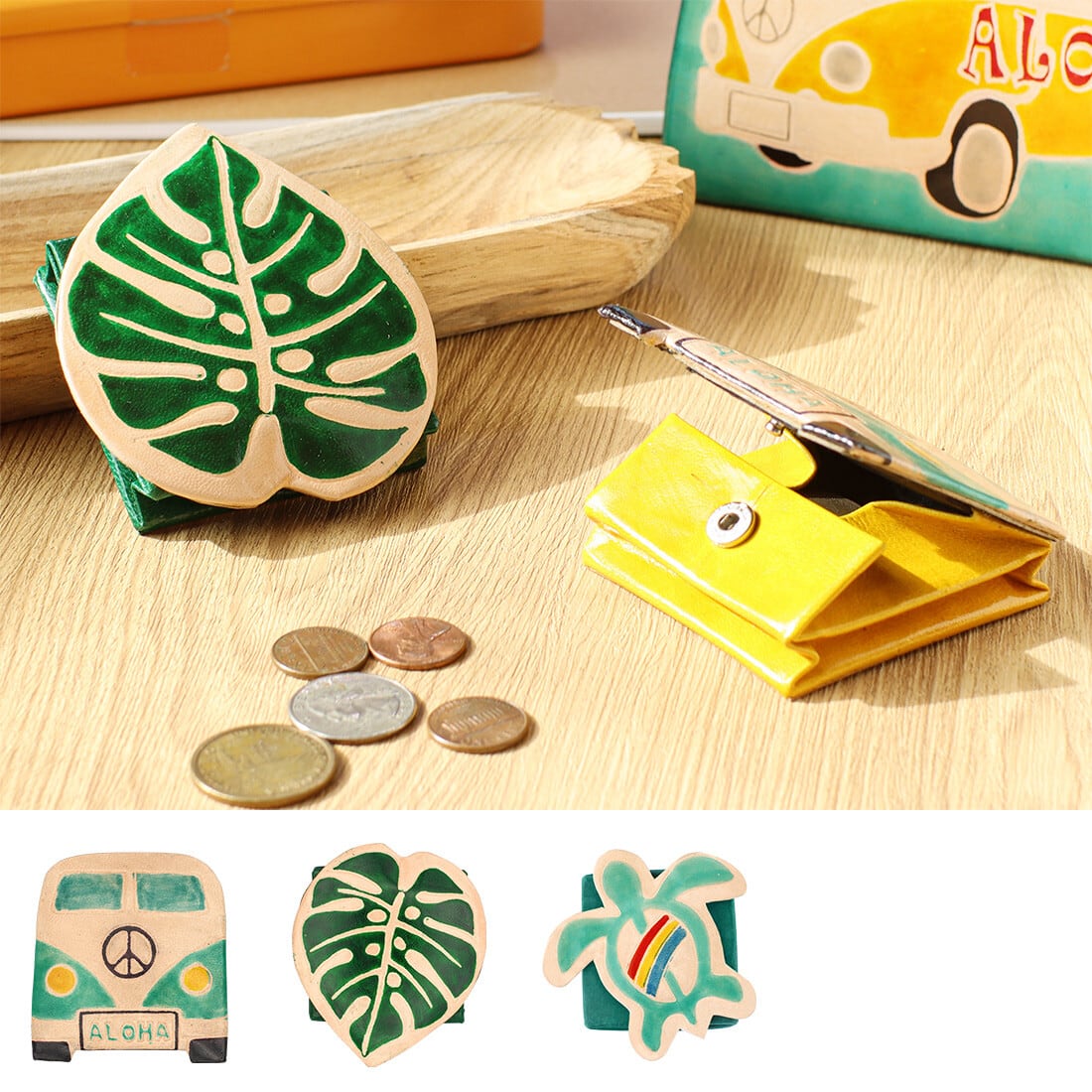 革の風合いとハワイをイメージさせるデザインに癒されるヤンピー製コインパース。