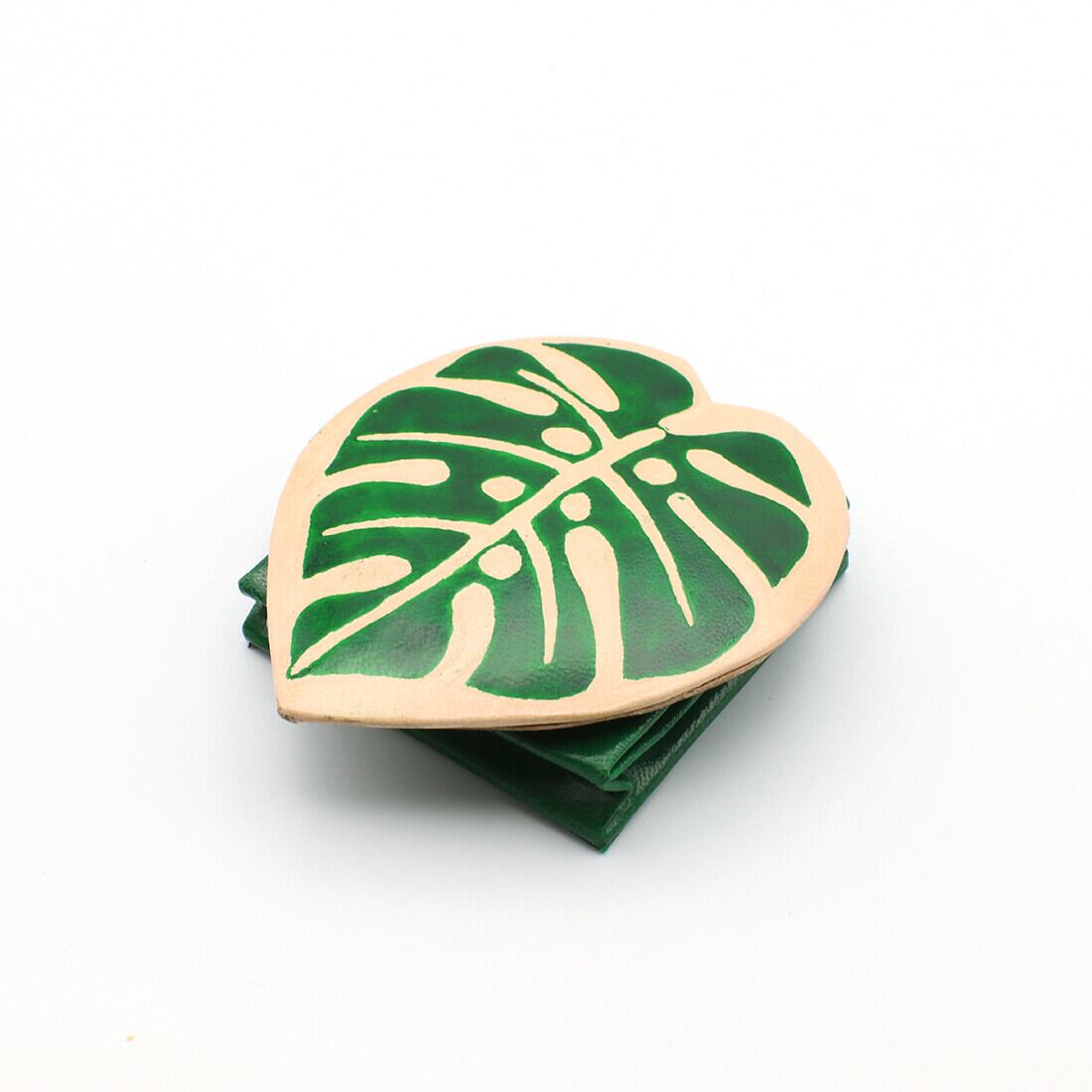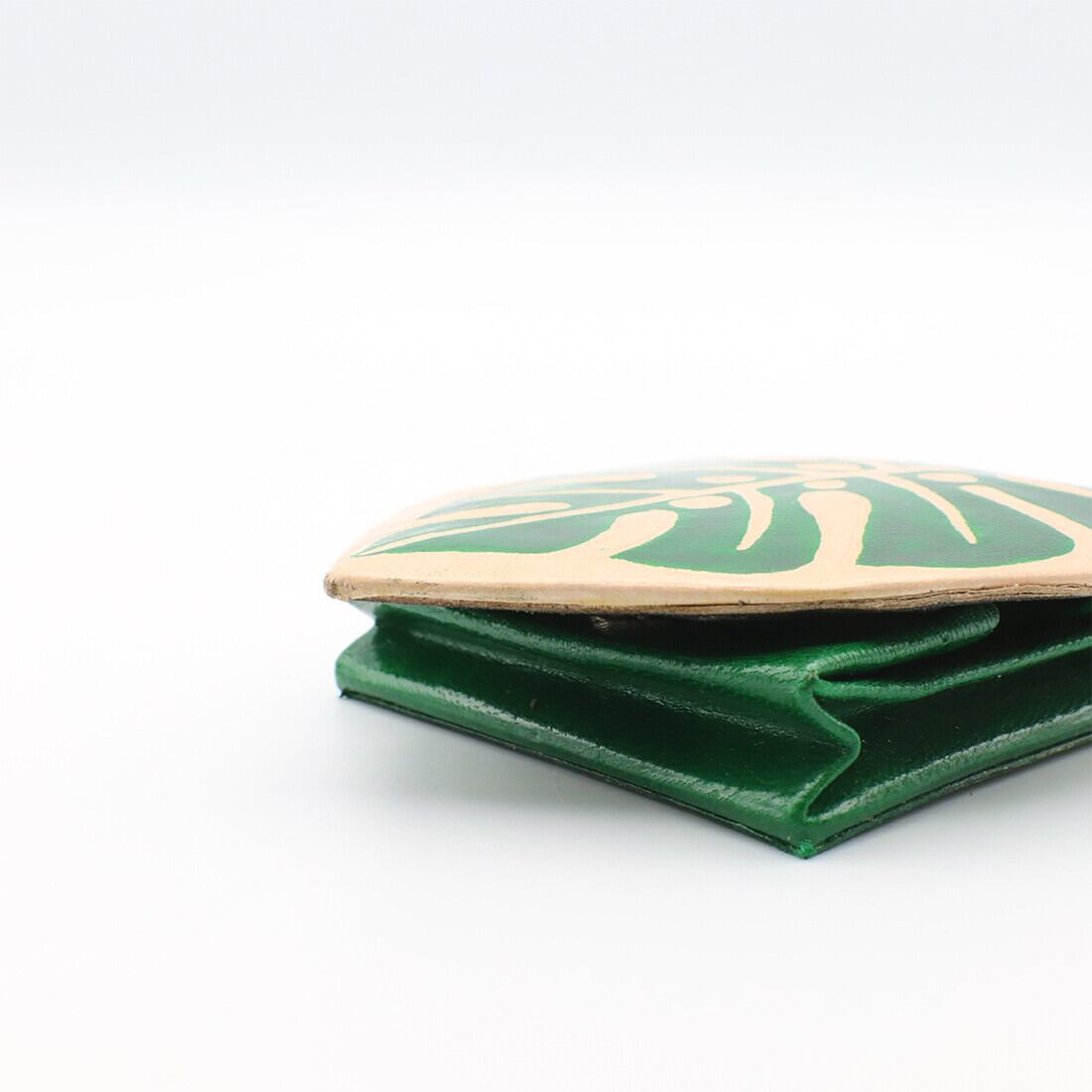 ポケットやカバンの内ポケットに入れて小銭や小物などの整理にどうぞ。山羊革に型押しで模様をデザインし、カラフルにペイントしています。