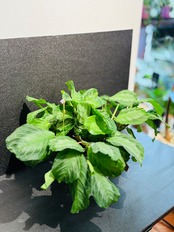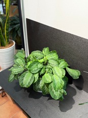 マランタ シルバーバンドは、鮮やかな緑白色の葉を持ち、主脈の左右に黒褐色の斑点が入る特徴的な品種です。