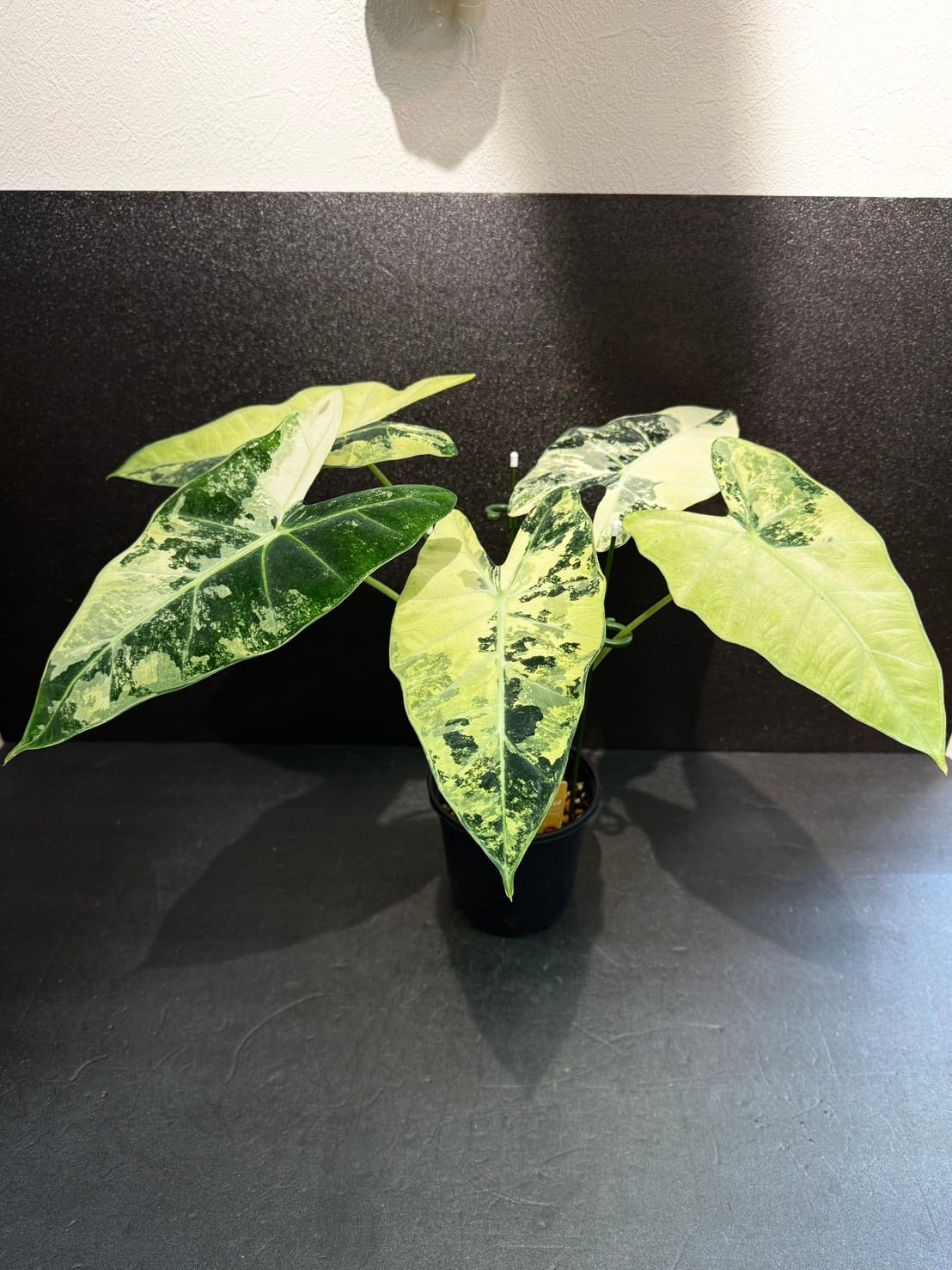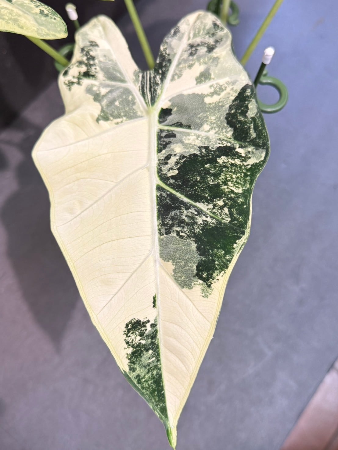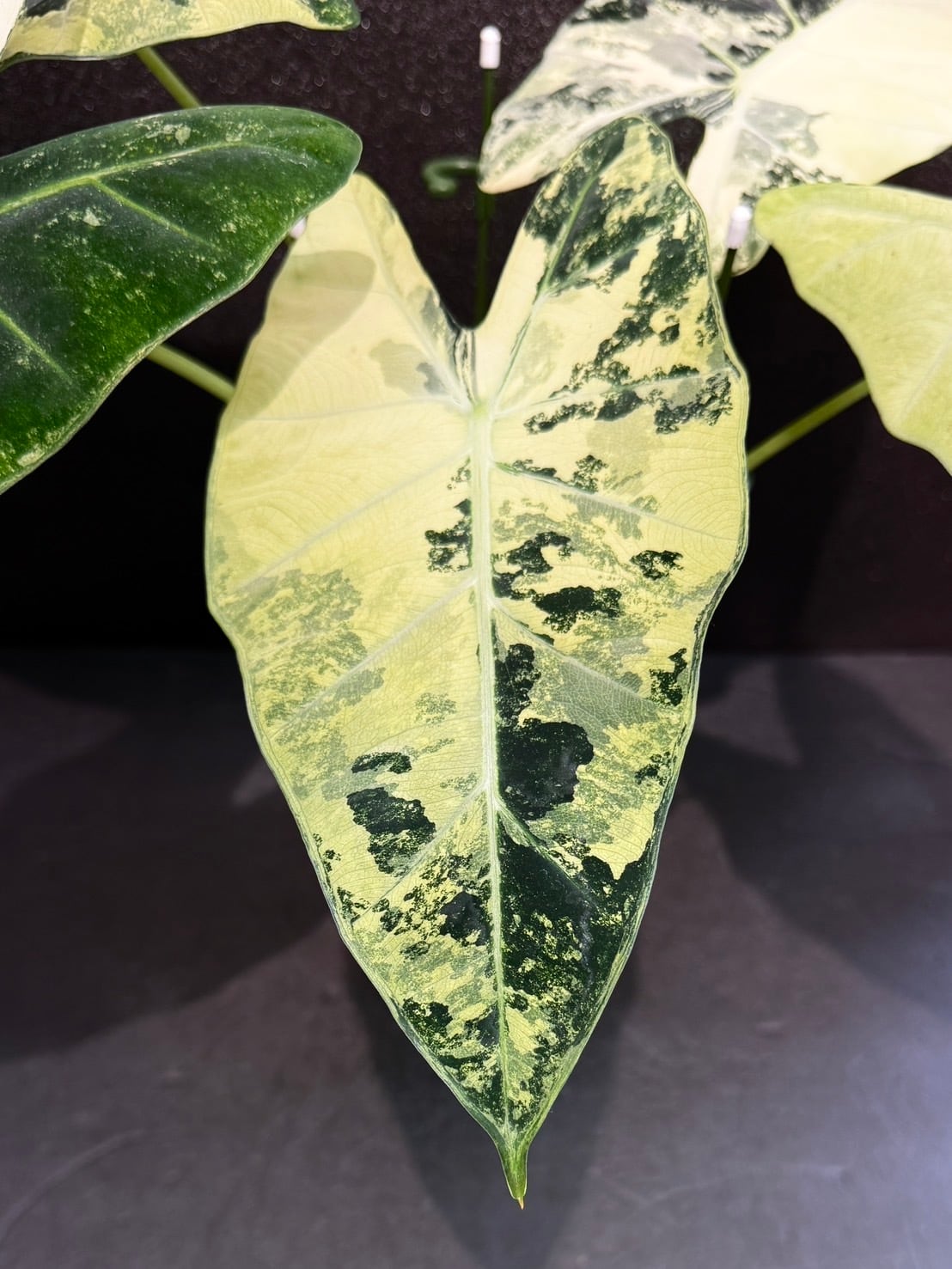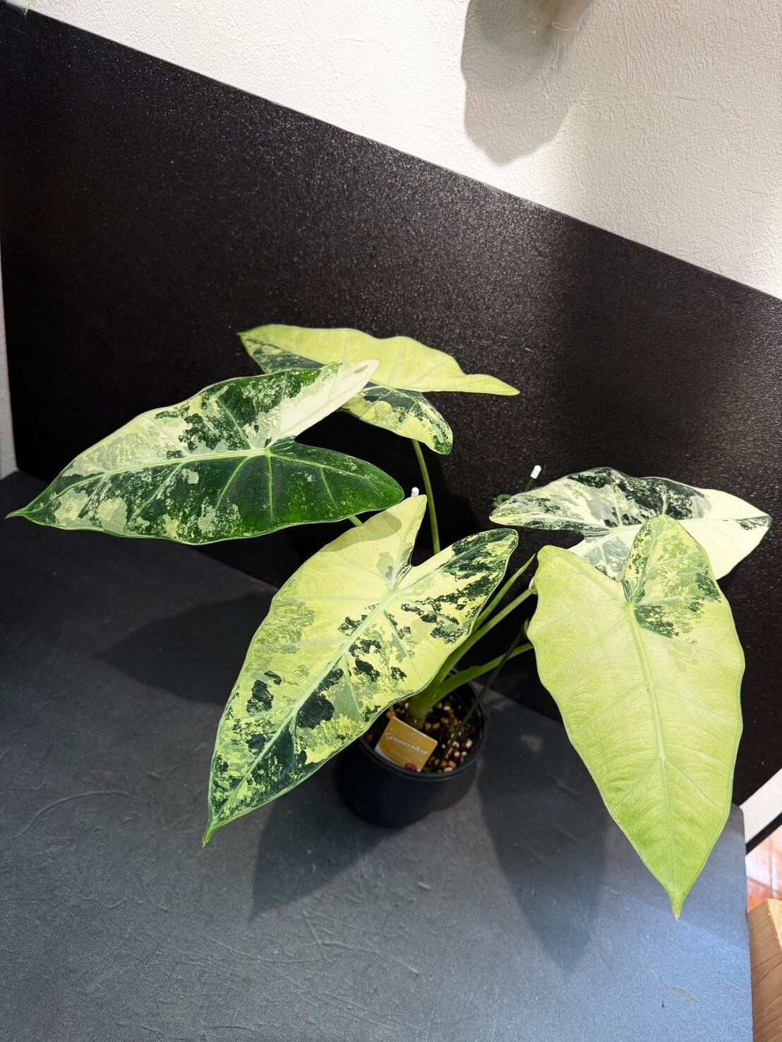 アロカシア・グリーンベルベットの斑入り品種です。