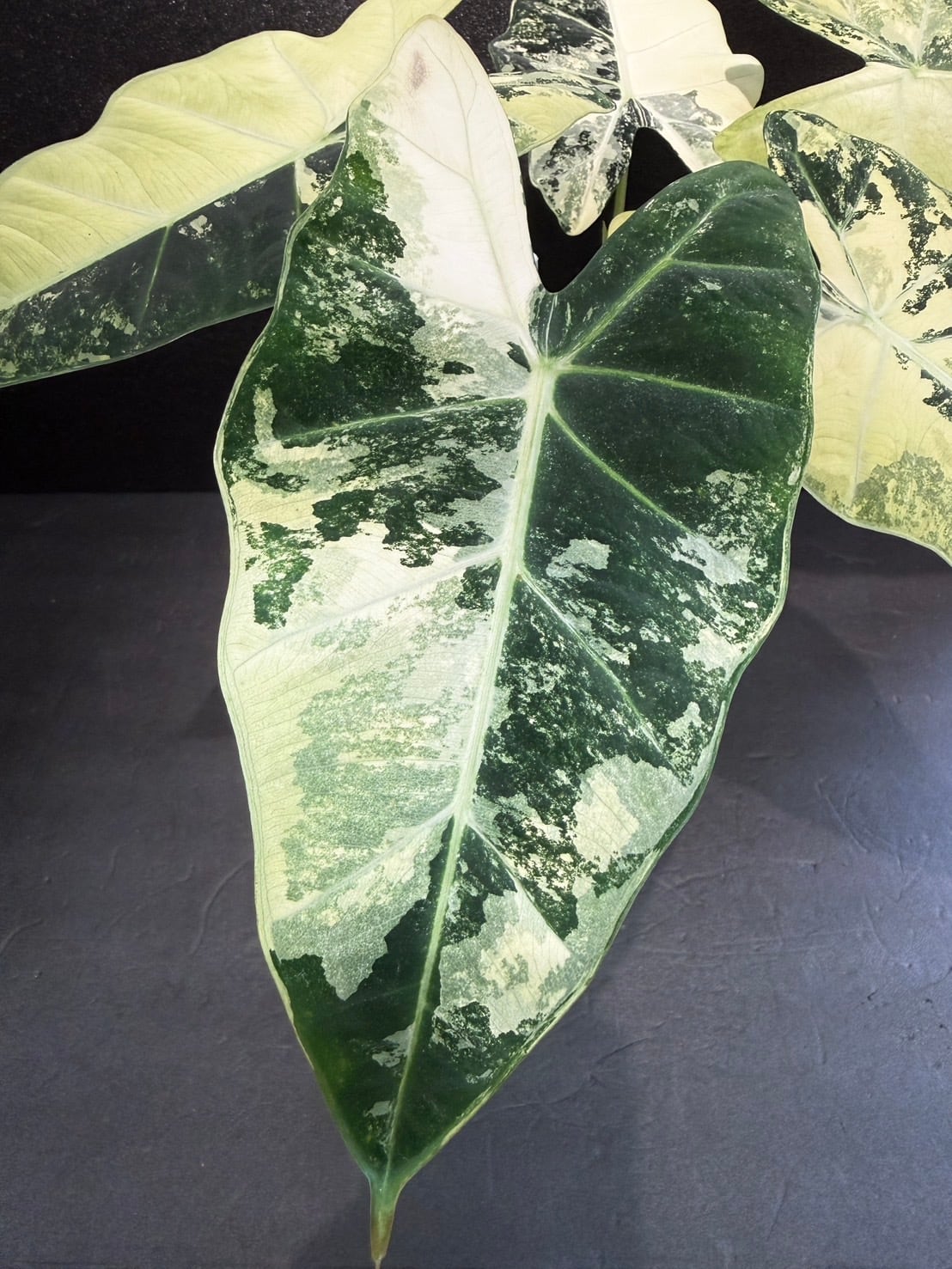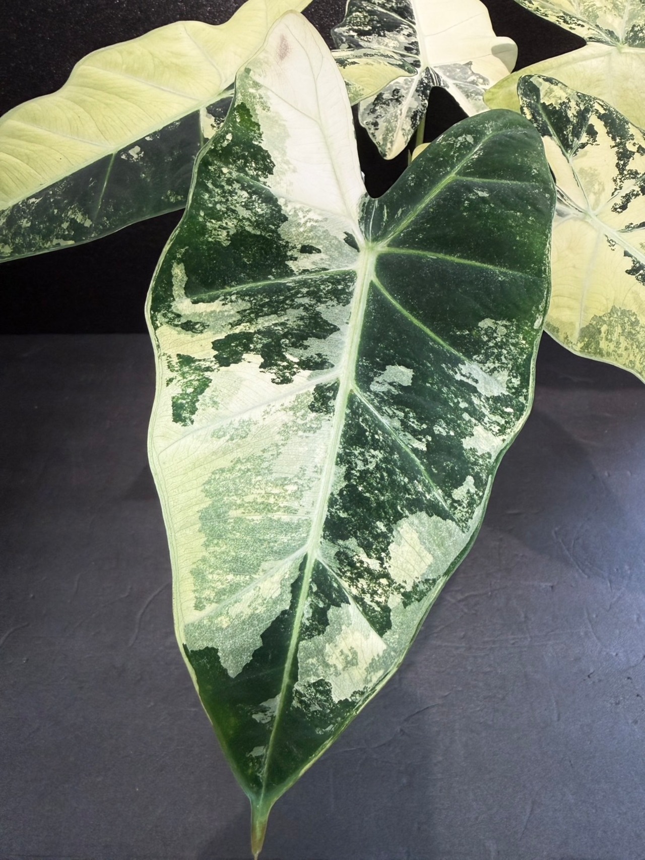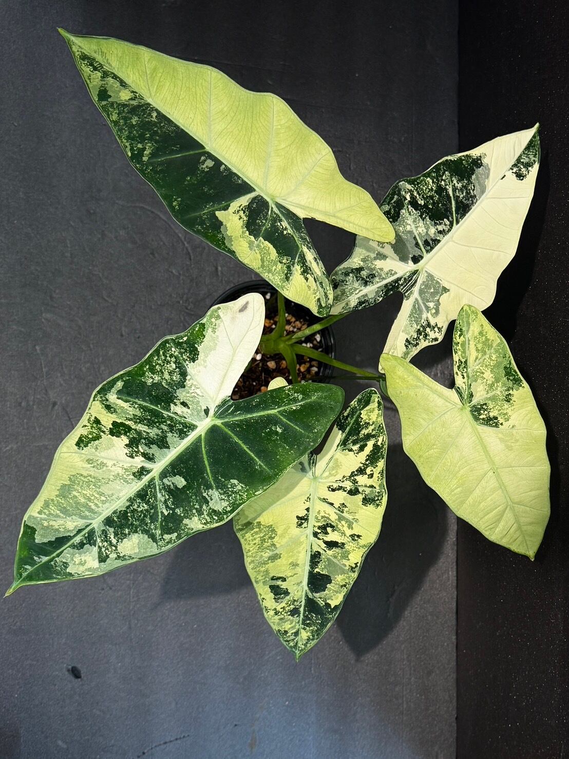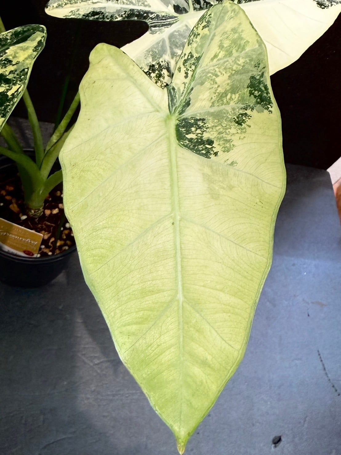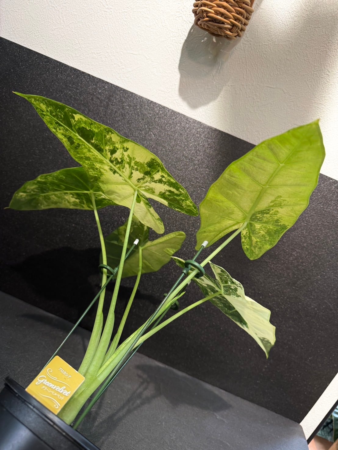 アロカシア・グリーンベルベットの斑入り品種です。