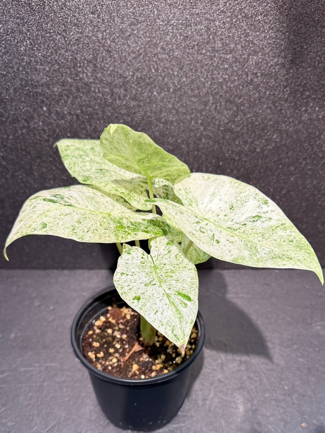 アロカシア オドラ バリエガータ バティックは、 観葉植物の定番種として人気のクワズイモで、 葉にまばらに斑が入る散り斑品種です。