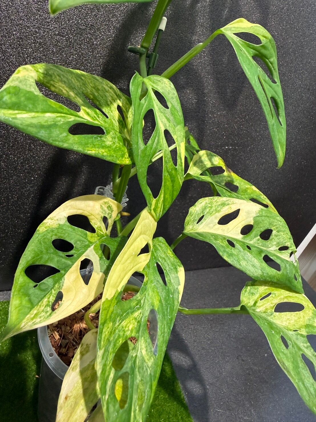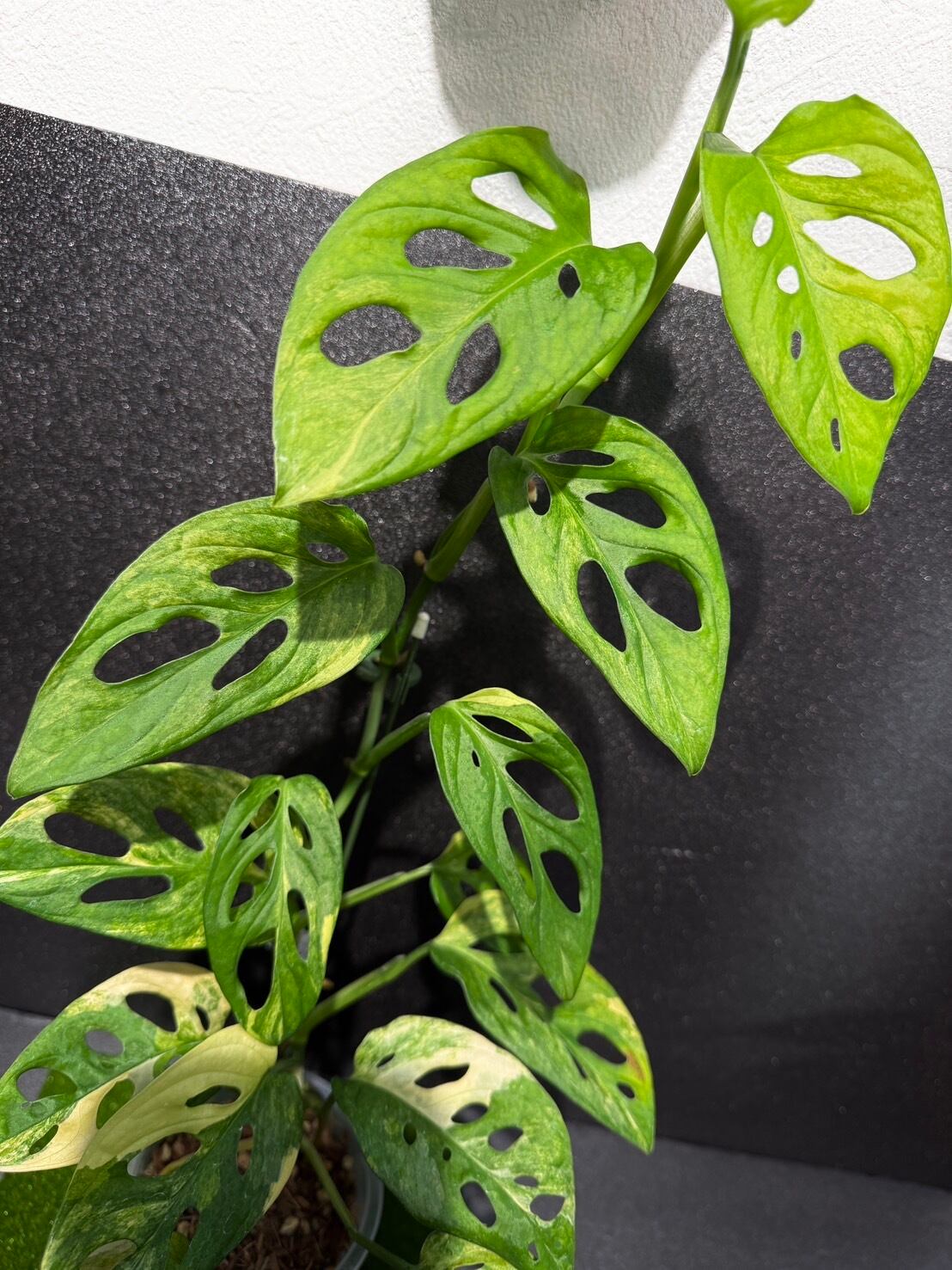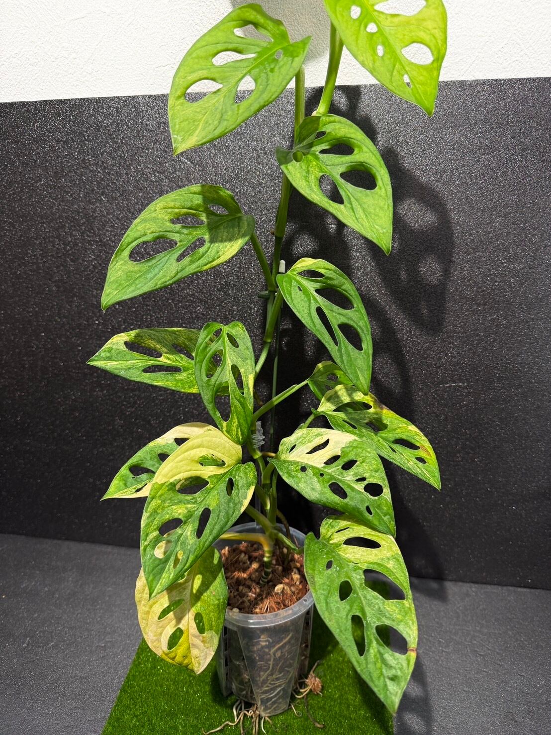 マドカズラは学名を「Monstera adansonii」といい、モンステラの仲間でこちらの商品は斑入りとなります。