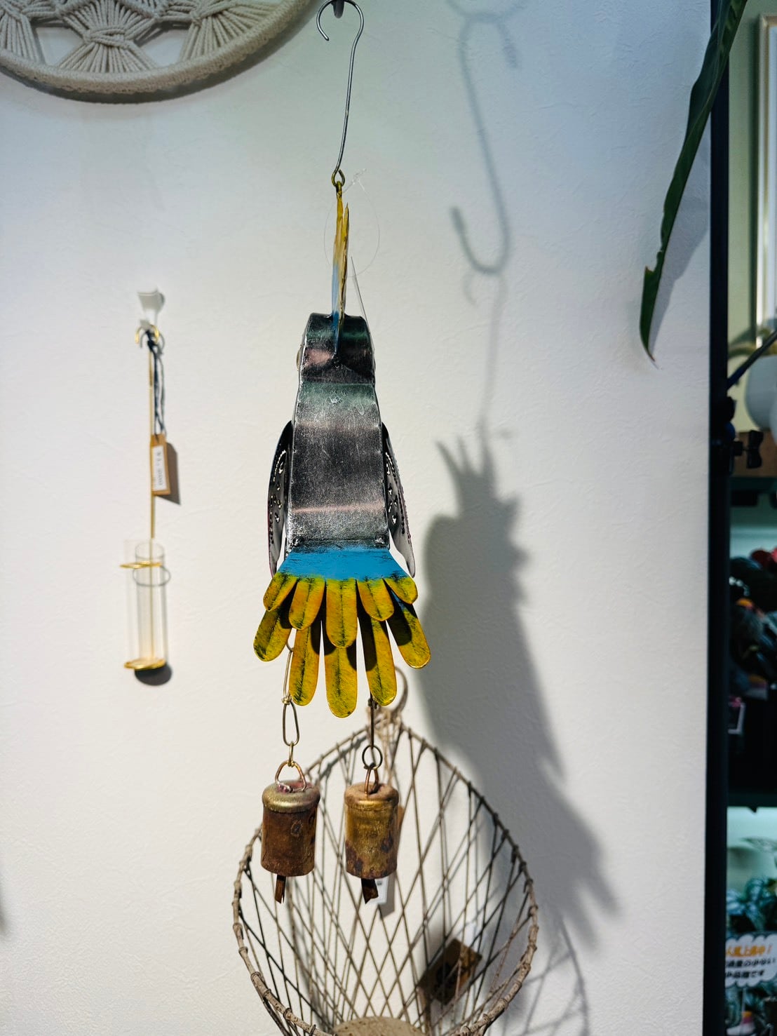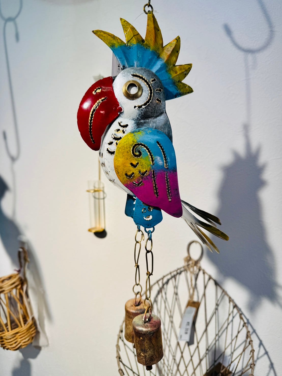 カラフルなトサカと羽根がかわいいブリキ製ベルです。
