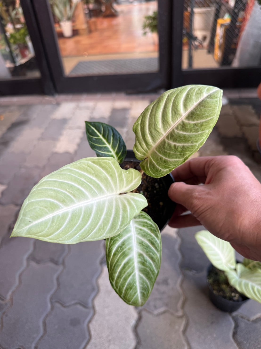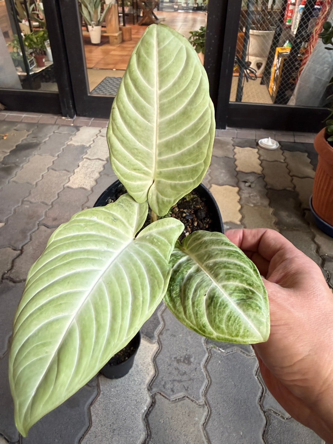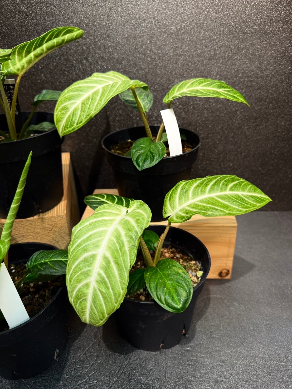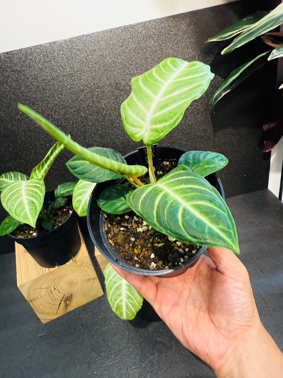 キサントソーマ・リンデニーミントは、通常のキサントソーマ リンデニーの大きな緑色の葉に、白く美しい葉脈が入るのに加え、ミント色の斑が入ることが特徴です。