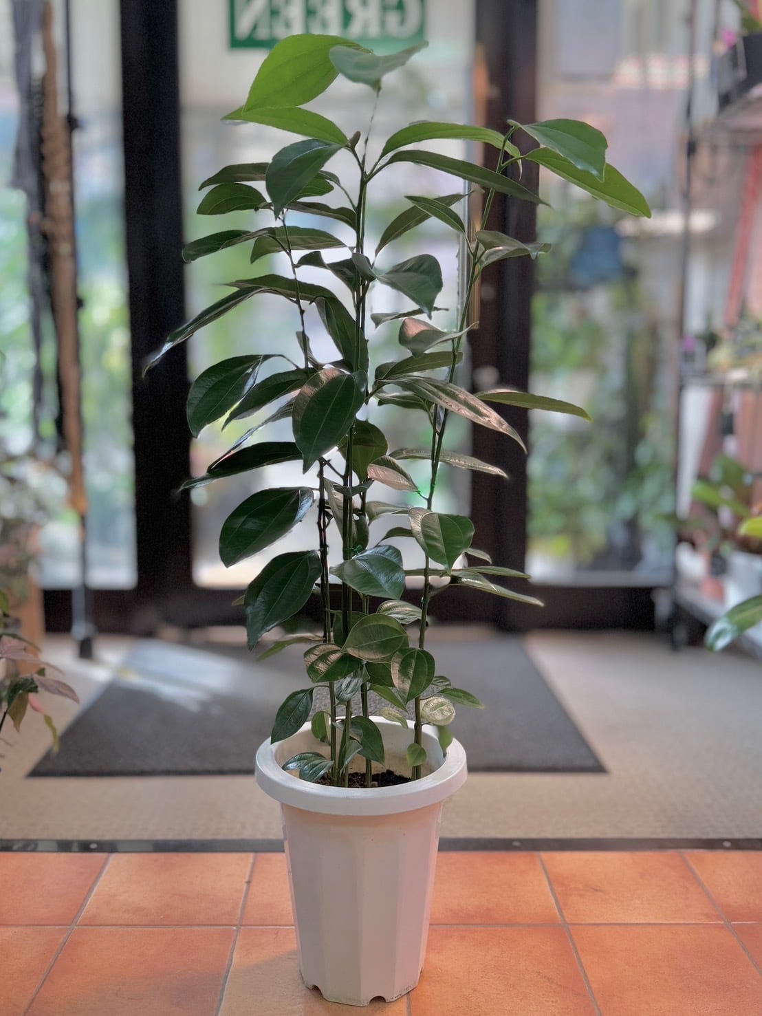 シナモンは、艶のある緑色の葉と縦に入った葉脈が美しい植物です。
