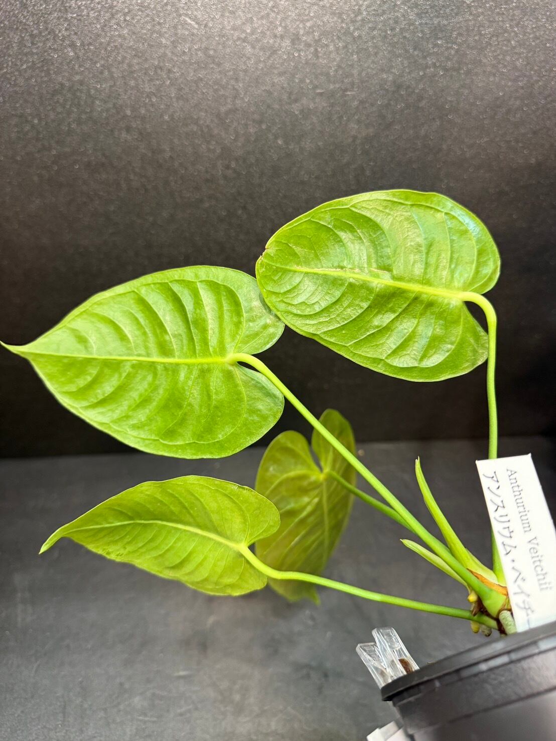 アンスリウム・ベイチーは、アンスリウム属の中でも人気の高い品種で、凹凸のあるダラッと垂れる美しい葉が特徴です。