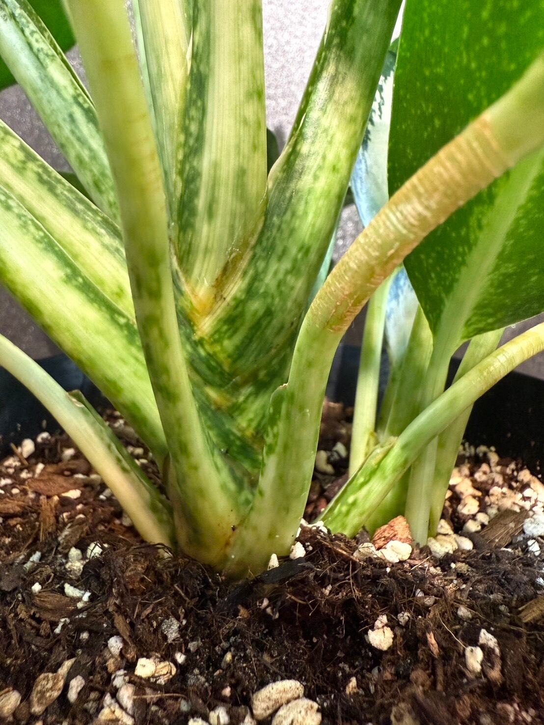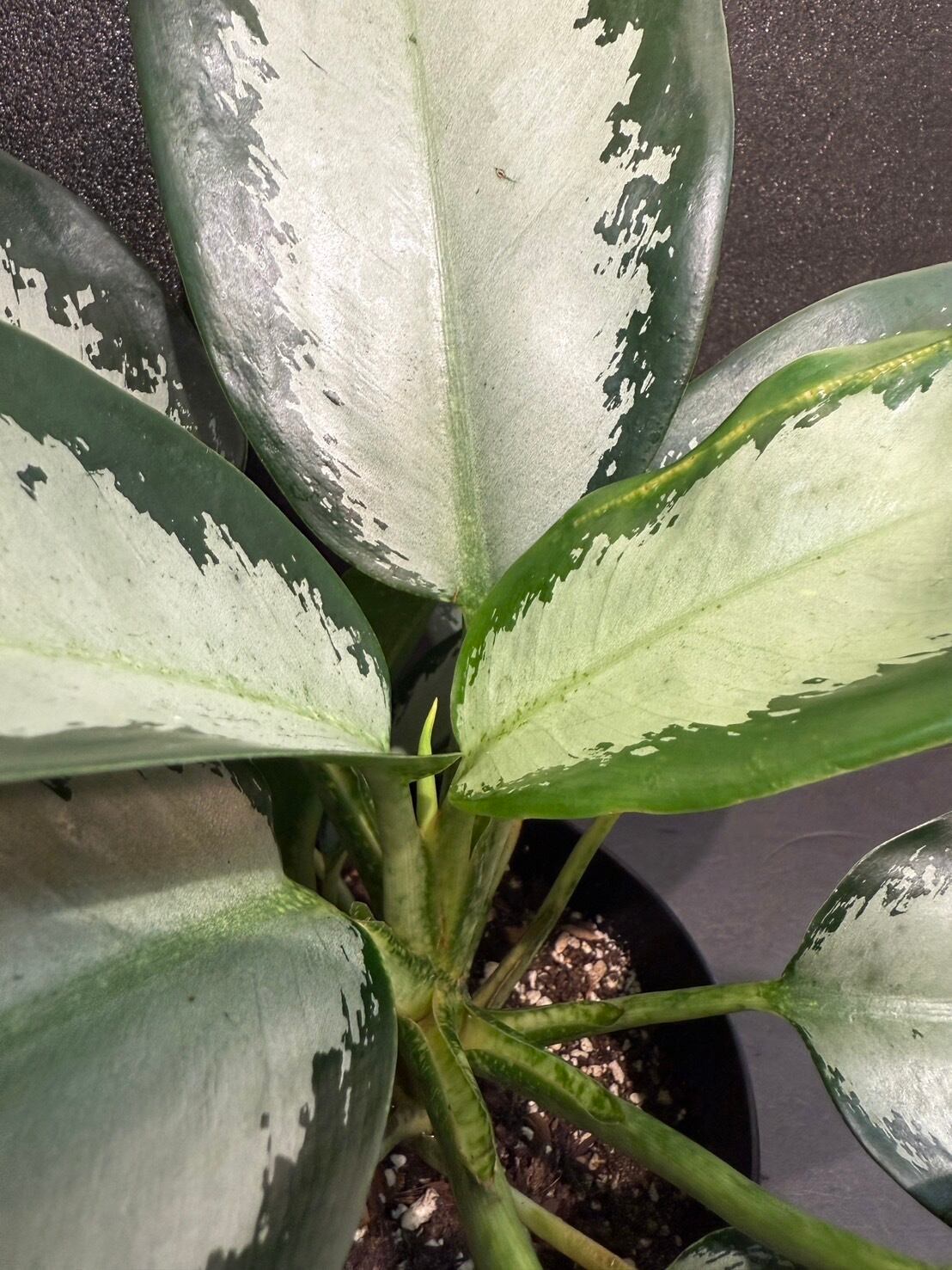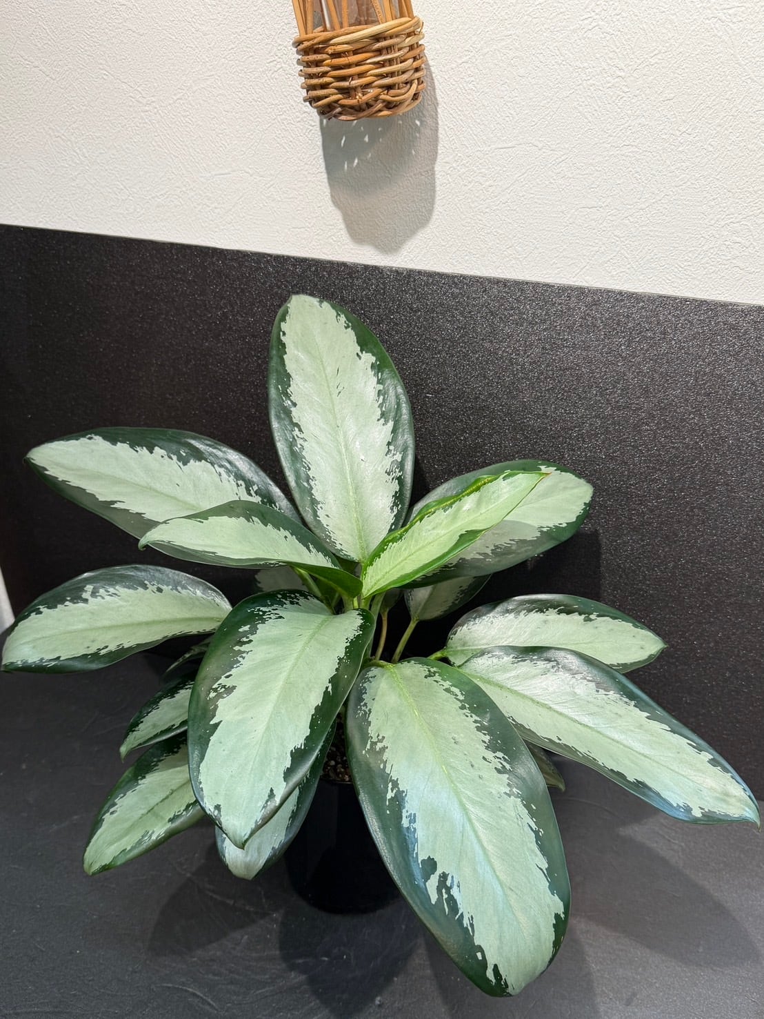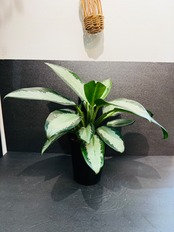 アグラオネマ オオサカブラックは、濃いグリーンとシルバーのコントラストが美しい品種です。
