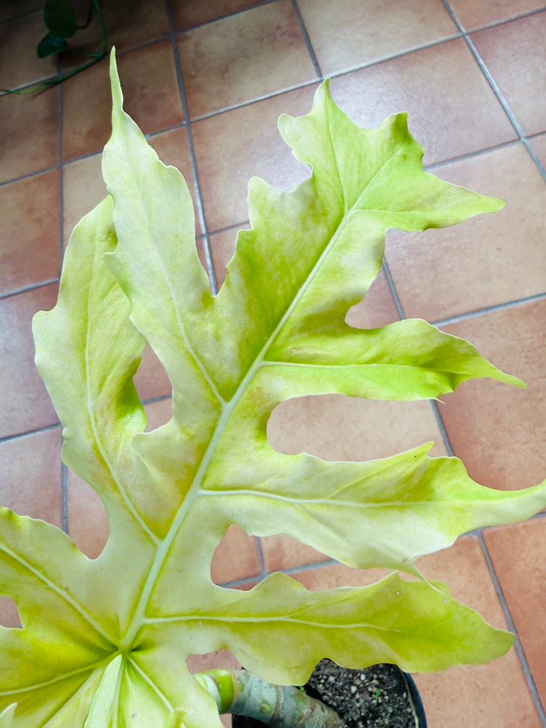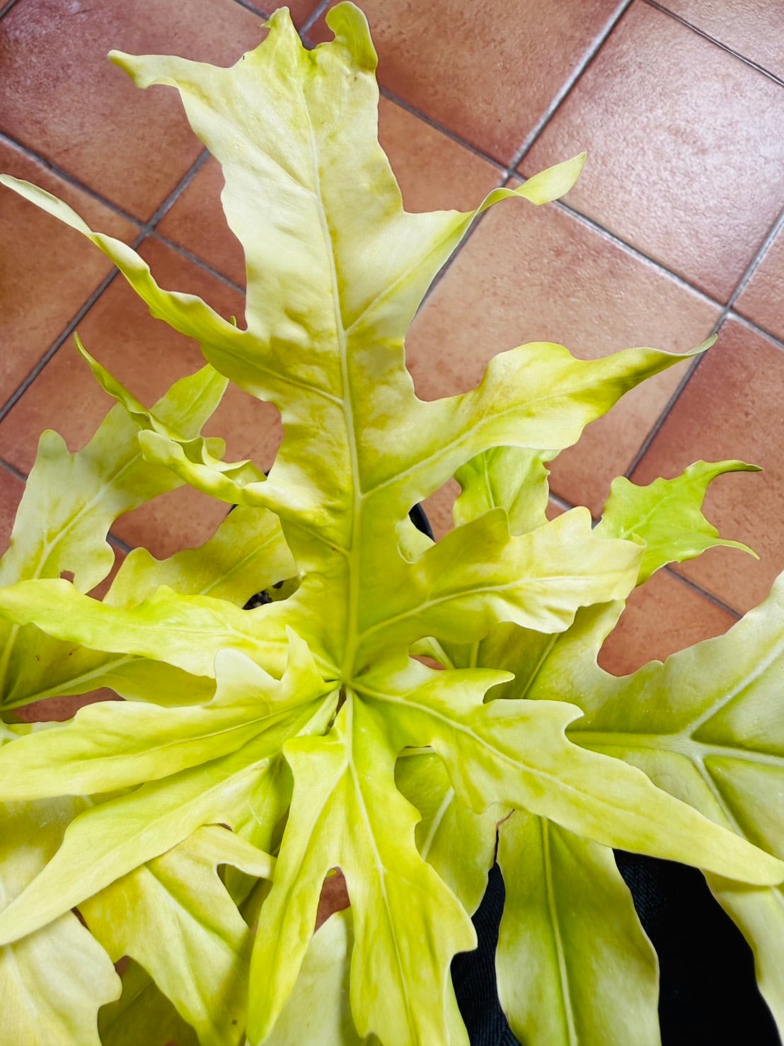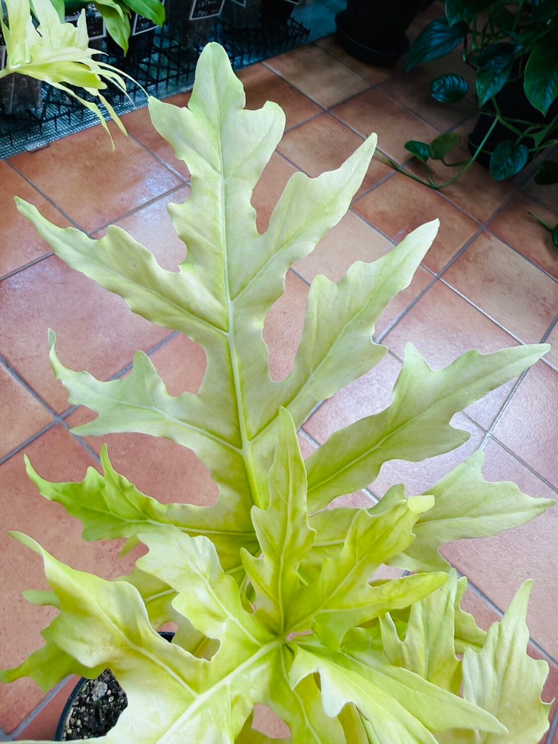 フィロデンドロン・ワルセヴィッチフラバムは、ライムイエローから明るいライムグリーン色の葉を持ち光沢のある葉色が特徴です。