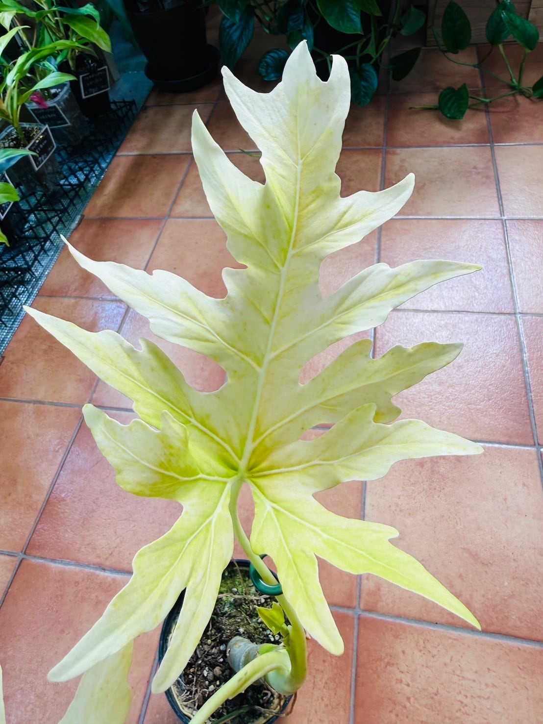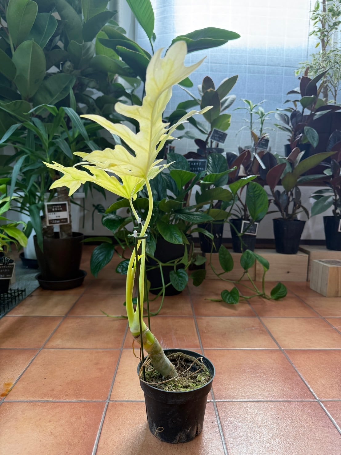 フィロデンドロン・ワルセヴィッチフラバムは、ライムイエローから明るいライムグリーン色の葉を持ち光沢のある葉色が特徴です。