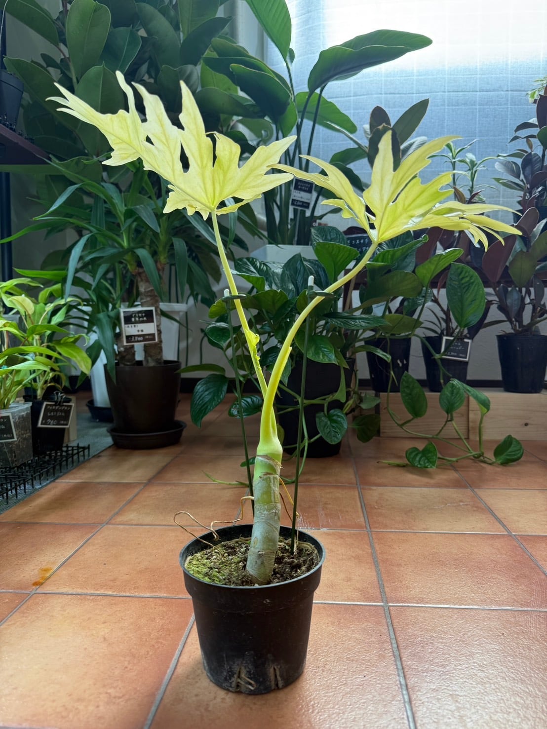 別名「プレミアムゴールド」とも呼ばれ、成長するにつれて葉に切れ込みが深くなり、ライム色のセロームに似た魅力的な姿になります。