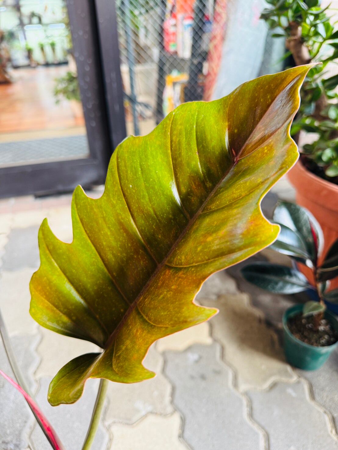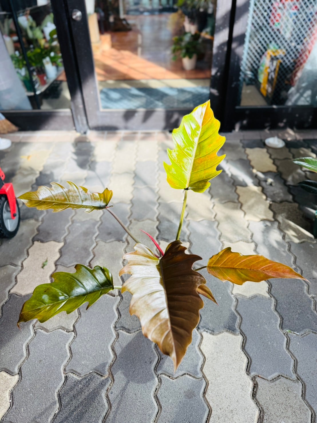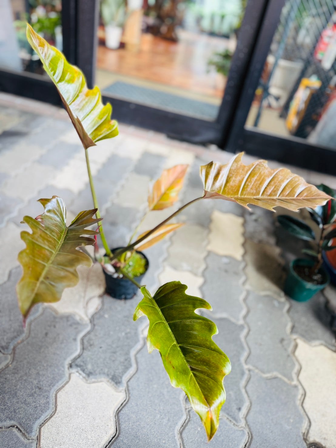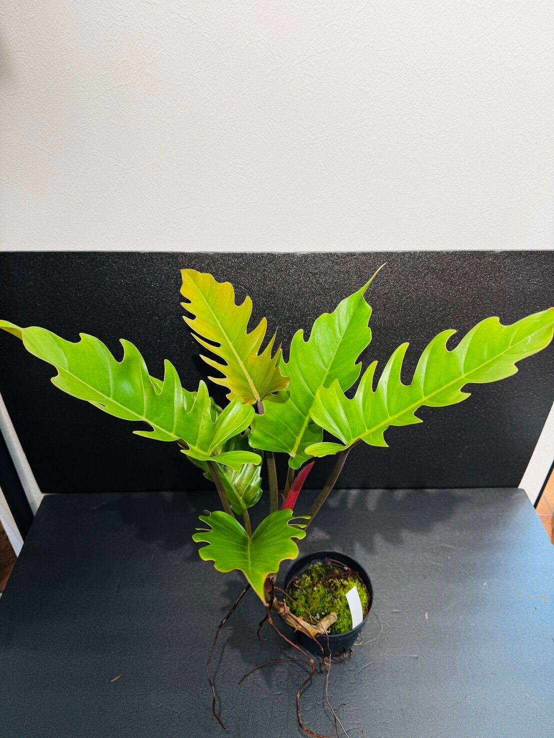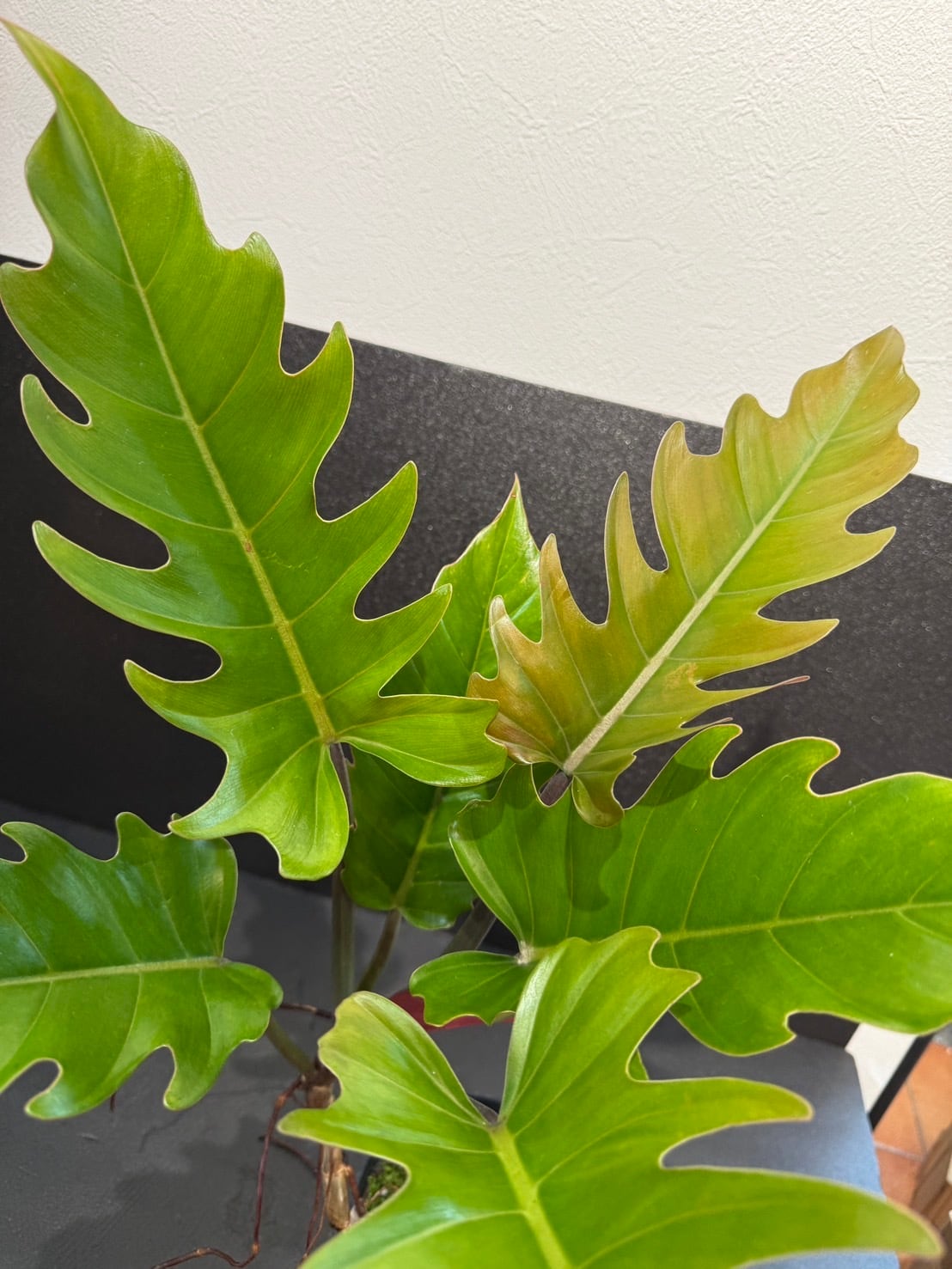 フィロデンドロン プルート・ロンギフォリアは、シャークとも呼ばれるギザギザとした独特の葉の切れ込みと、新芽はサーモンピンク色で、成長と共に葉の色が深まっていきます。