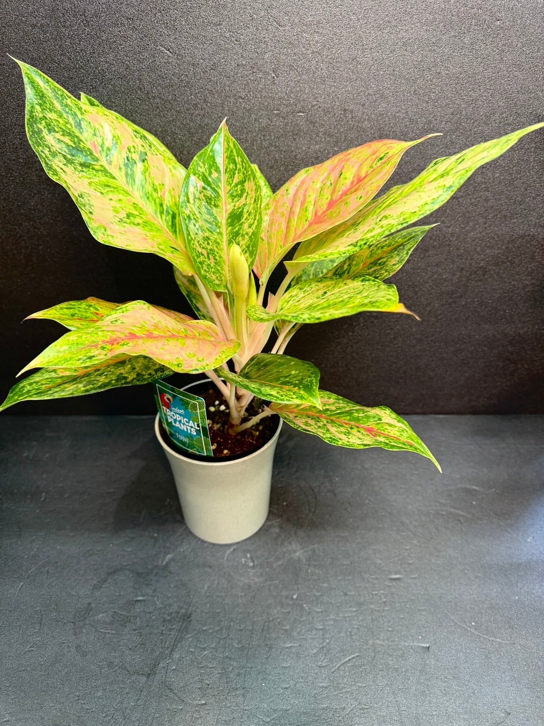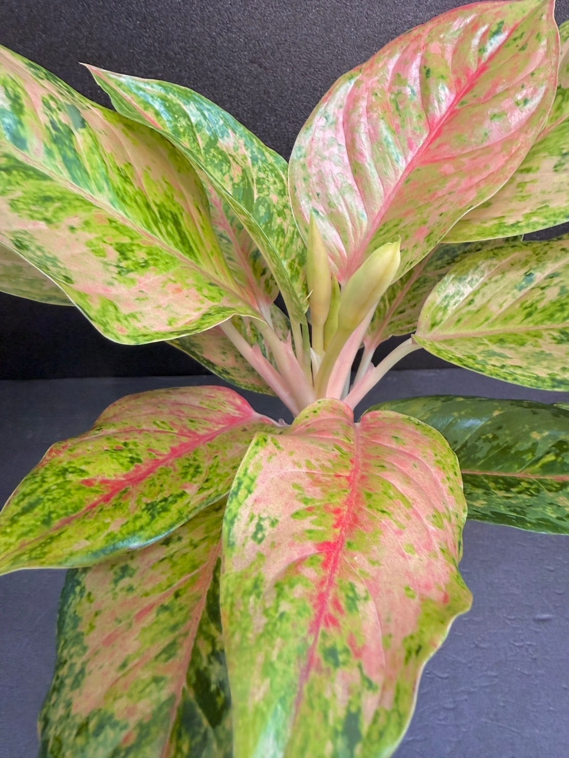 アグラオネマ プラカイペットレッドは、イエローベースにピンクと赤の斑が入る希少でとても美しい観葉植物です。
