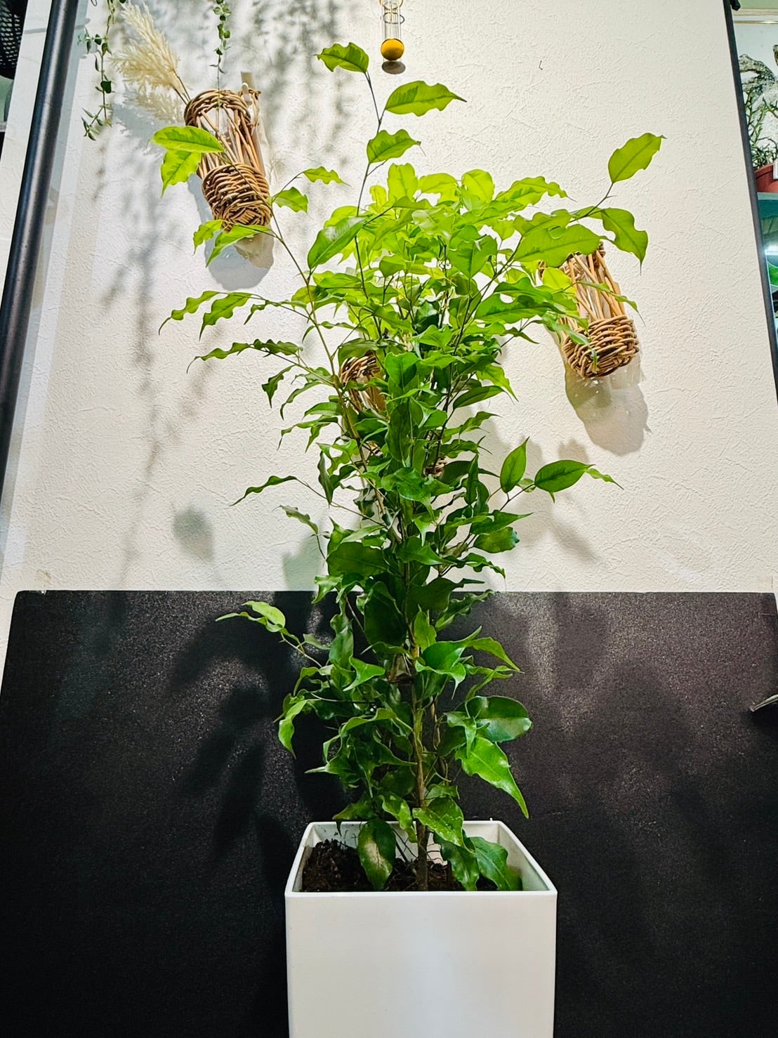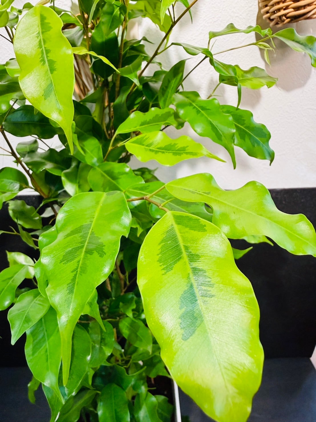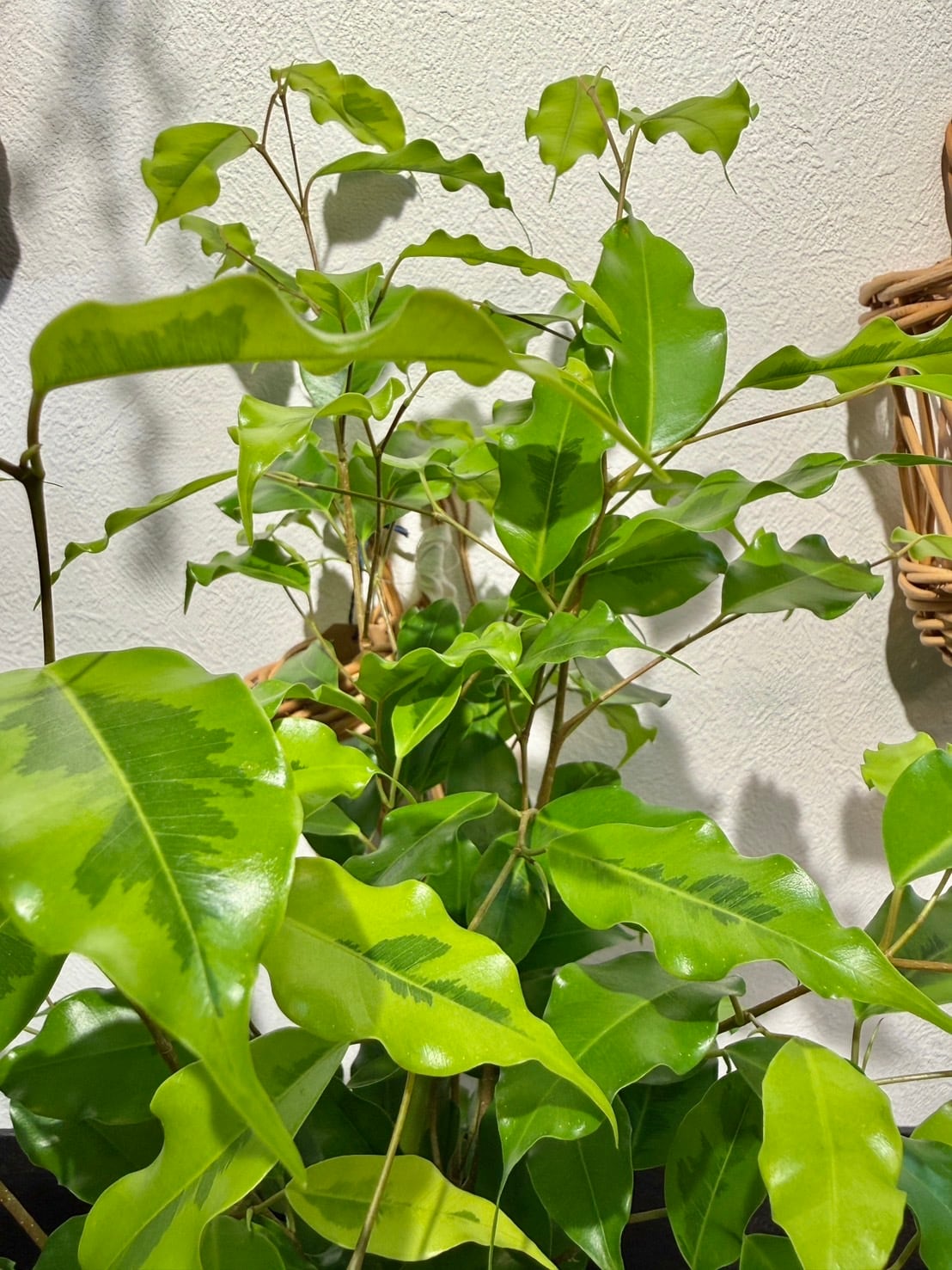 フィカス・ベンジャミナレジナルドは、初めは鮮やかなライムの新芽が出てきて、次第にグリーンへ変わります。