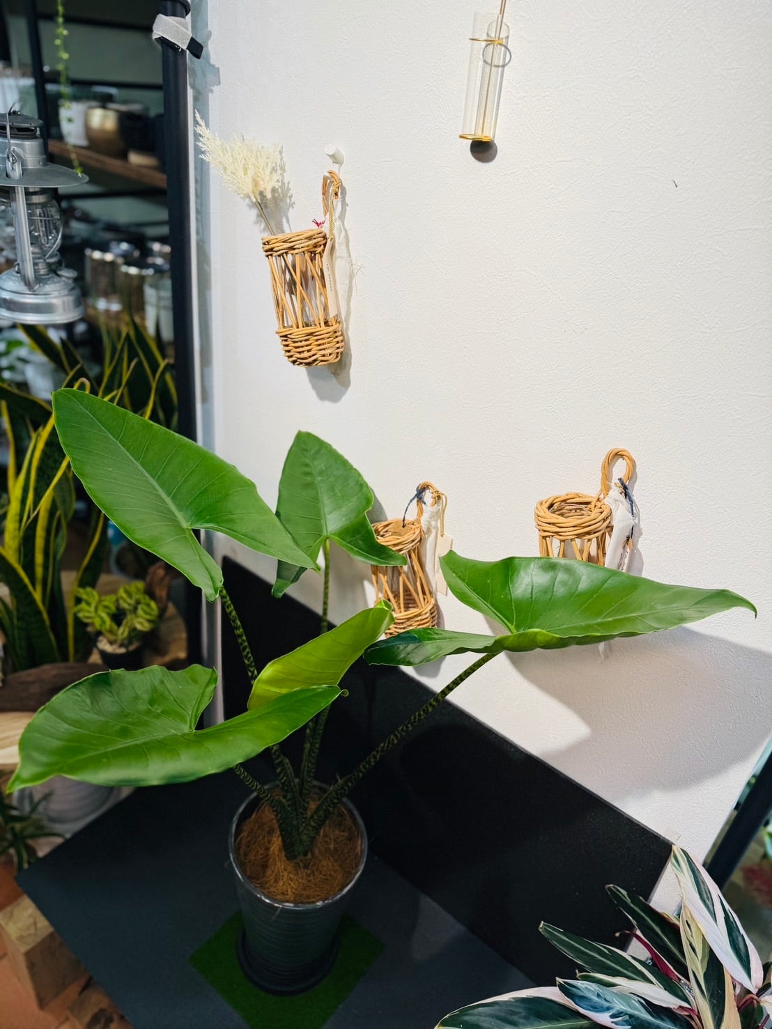 また葉の長さは45~100cmほどと巨大なため強い存在感を感じさせ、葉の形はシャープな矢尻形をしています。