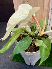 フィロデンドロン・フロリダゴーストは、新芽はクリーム色や淡いミントグリーンで展開し、成長とともに濃い緑色に変化します。
