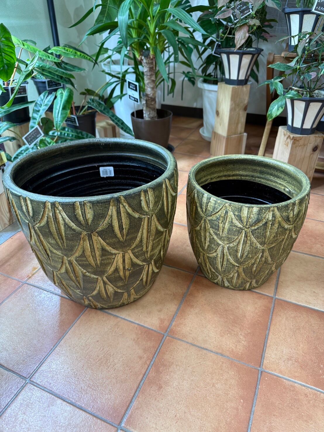 色味はくすんだグリーンの色合いで落ち着いた印象の鉢です。