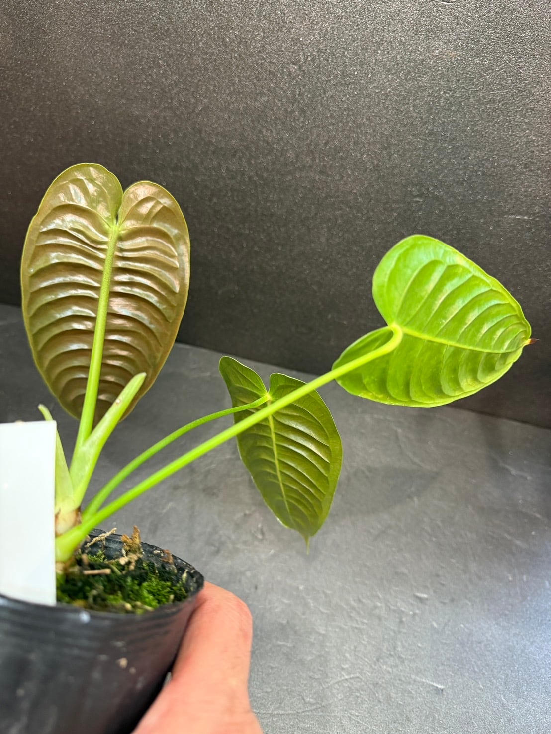 アンスリウム・ベイチーは、アンスリウム属の中でも人気の高い品種で、凹凸のあるダラッと垂れる美しい葉が特徴です。