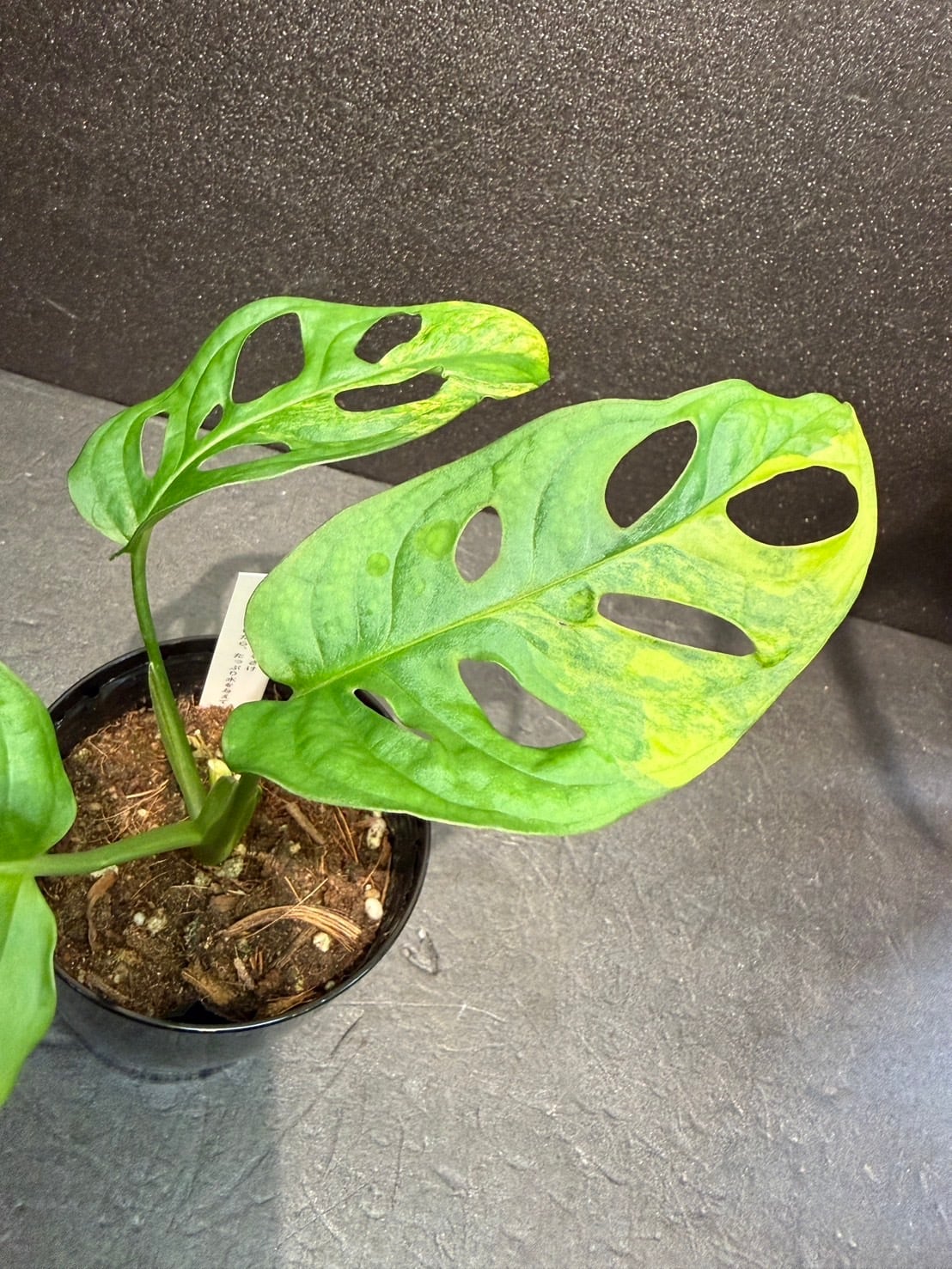 マドカズラは学名を「Monstera adansonii」といい、モンステラの仲間でこちらの商品は斑入りとなります。
