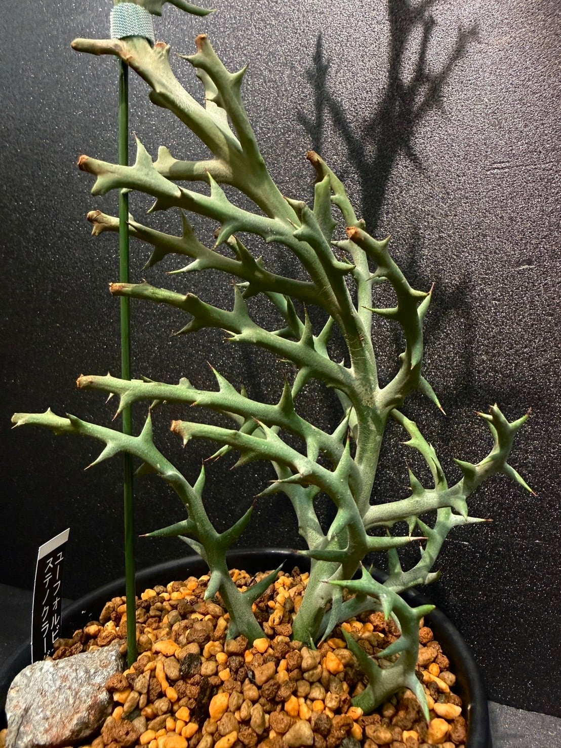 ユーフォルビア・ステノクラーダは、独特の形状で年数と共に木質化する枝が特徴のユーフォルビアです。