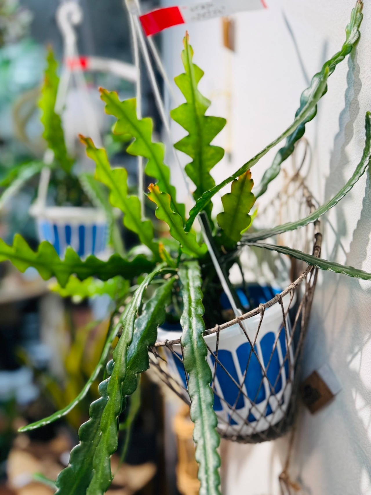 エピフィラム・ハクビクジャクは、魚の骨のような姿のフィッシュボーンカクタスはサボテンの仲間で、学名は「クリプトセレウス アントニヤヌス」といい、「ジグザグカクタス」「クジャクサボテン」「ムカデサボテン」「エピフィルムアングリガー」とも呼ばれています。