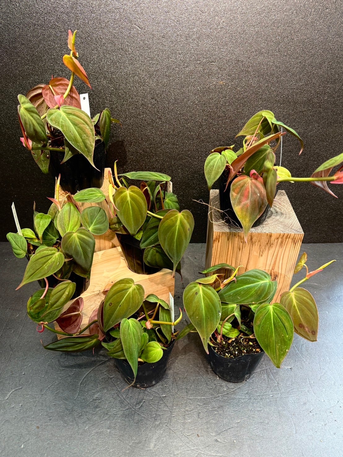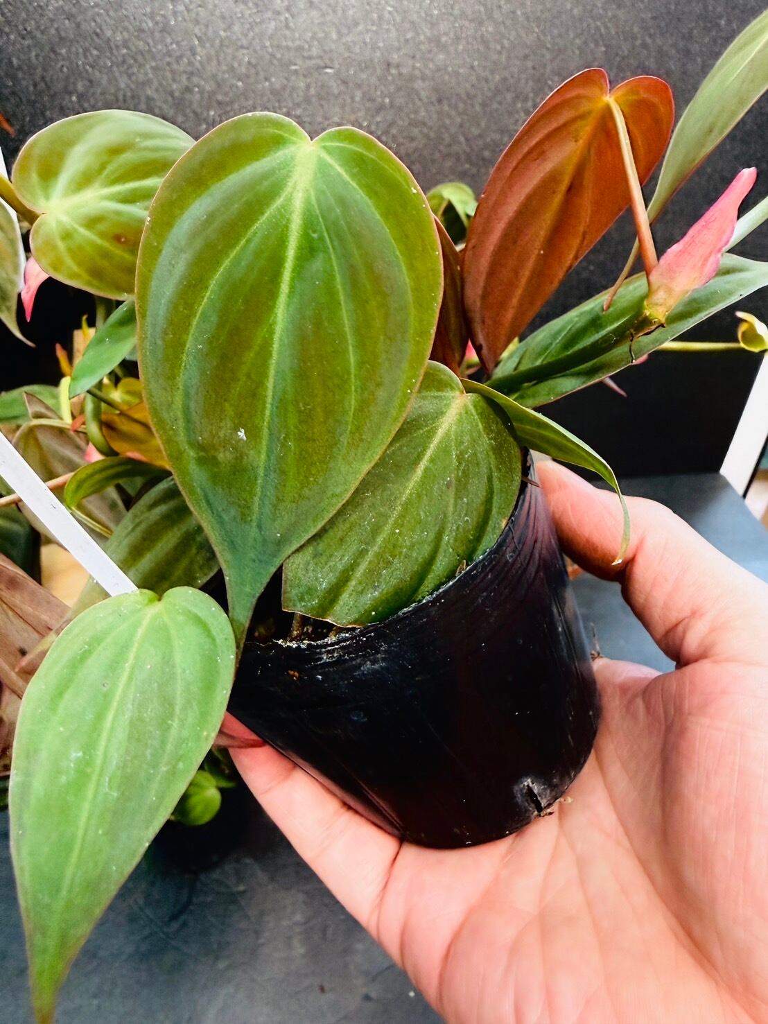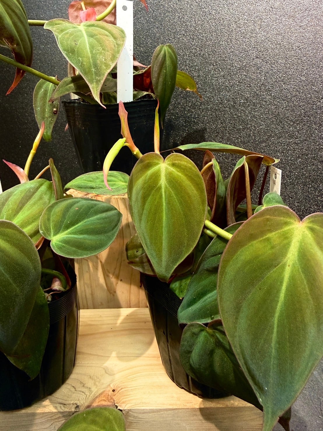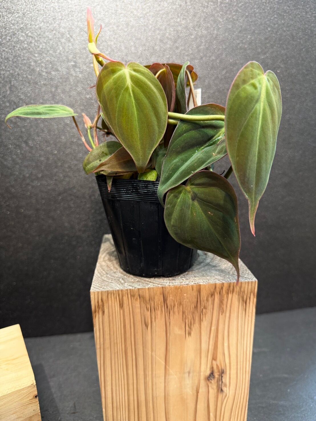 フィロデンドロン・ミカンスは、ベルベットを想像させるような高級感のある葉の質感と、大振りで可愛らしい卵形の葉が特徴です。