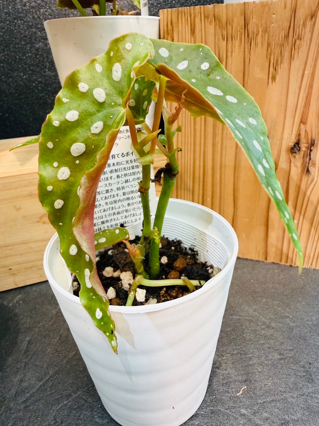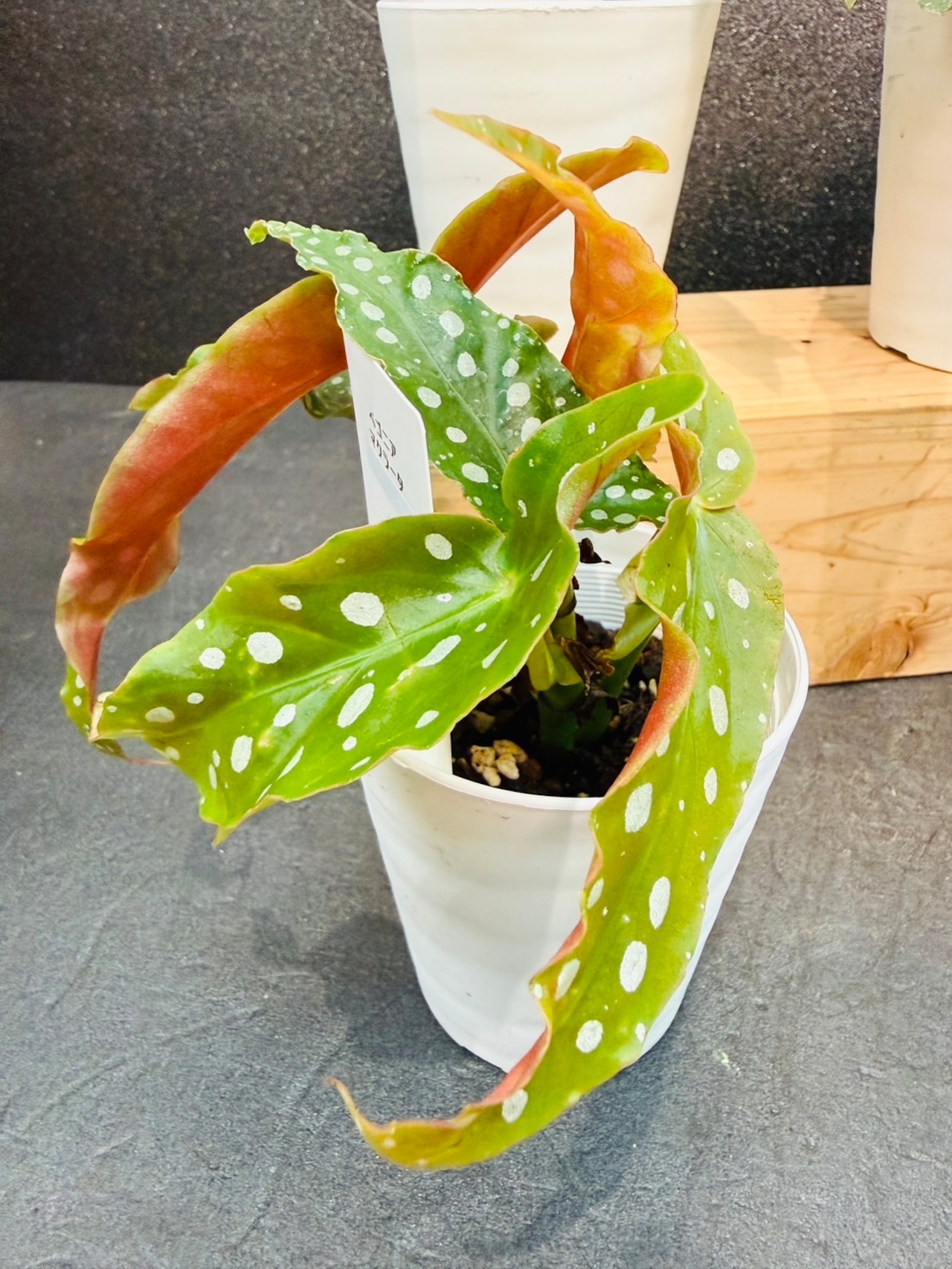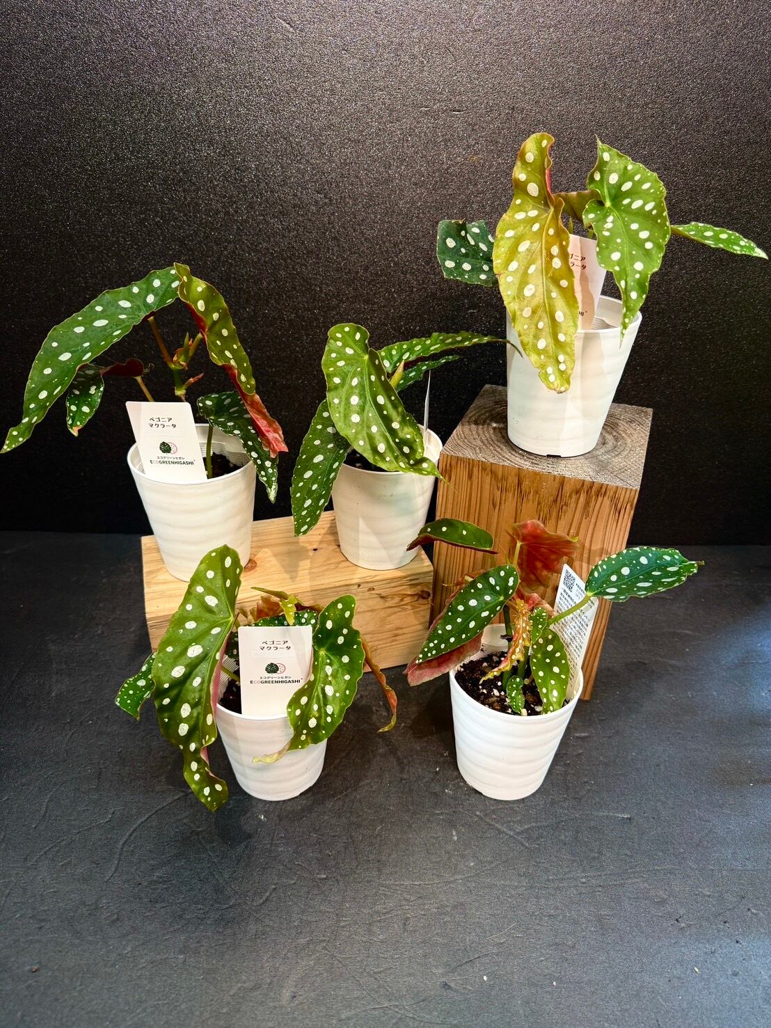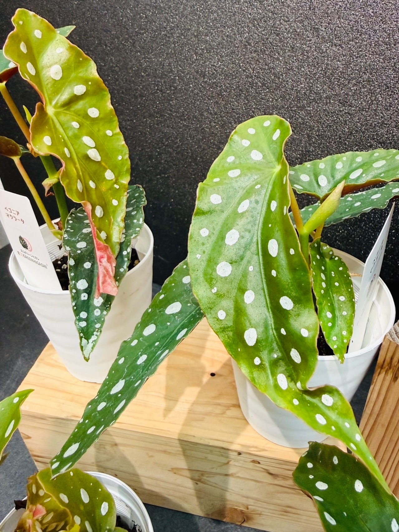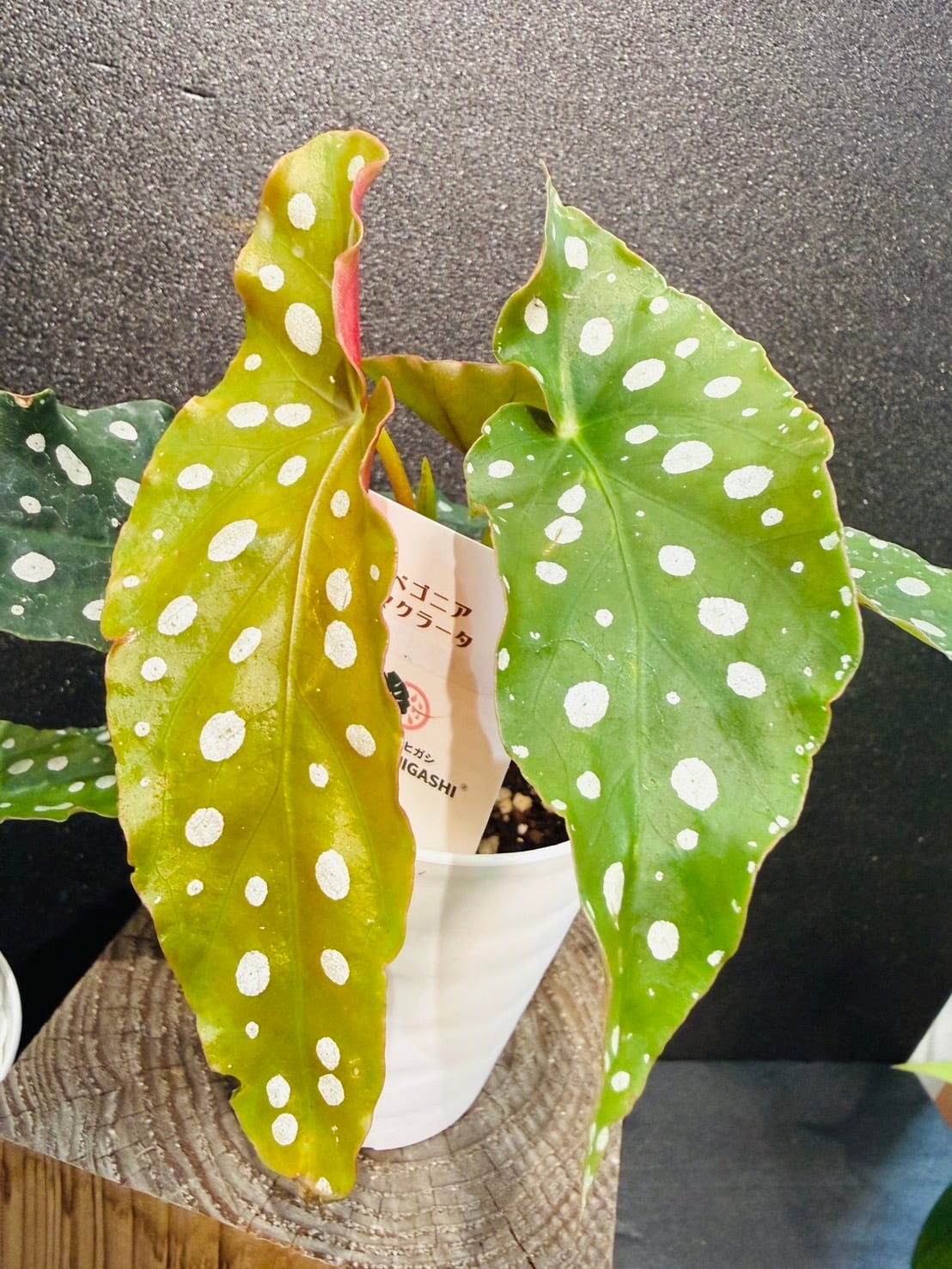 ベゴニア・マクラータは、濃い緑色の葉に白い水玉模様が入った葉色をしています。