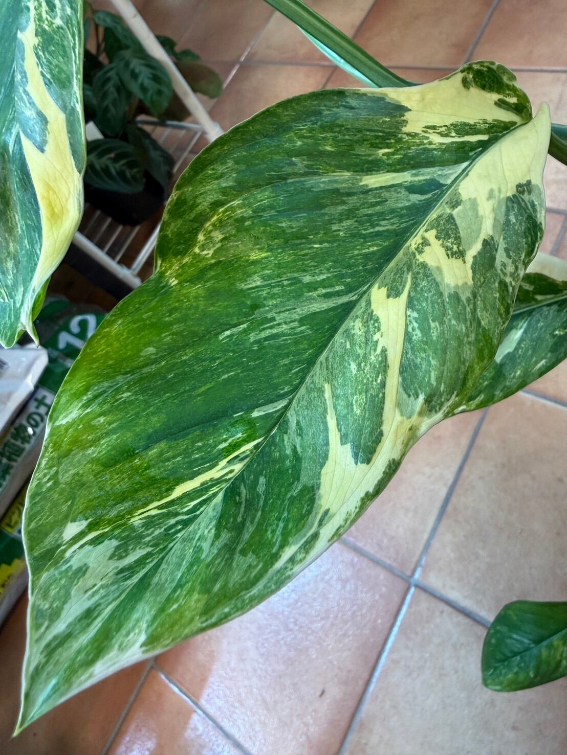 葉の縁に沿って白や黄色の美しい斑が入る希少種です。