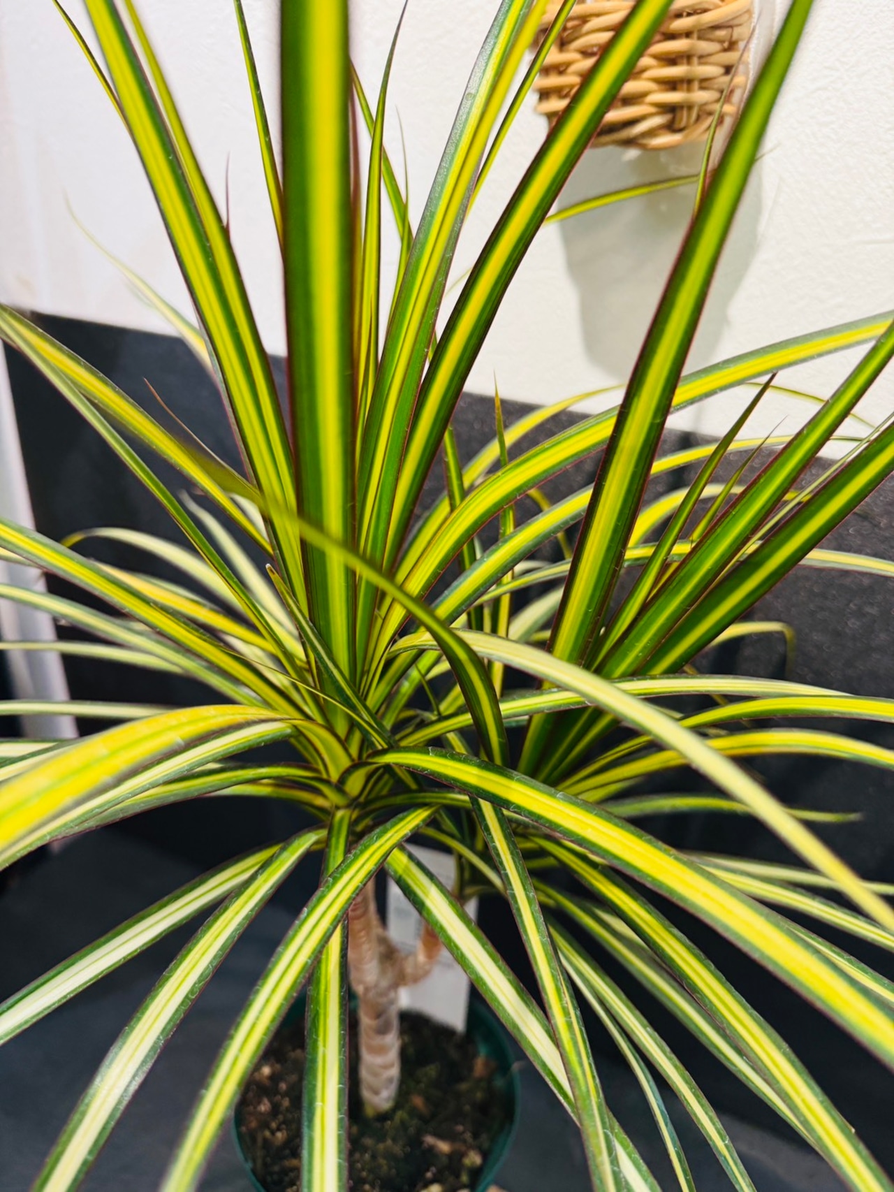 ドラセナ・コンシンネ・マジナータ・ゴールドは、剣先型の細長い濃緑色の葉に、色鮮やかな黄色の中斑が入る観葉植物です。