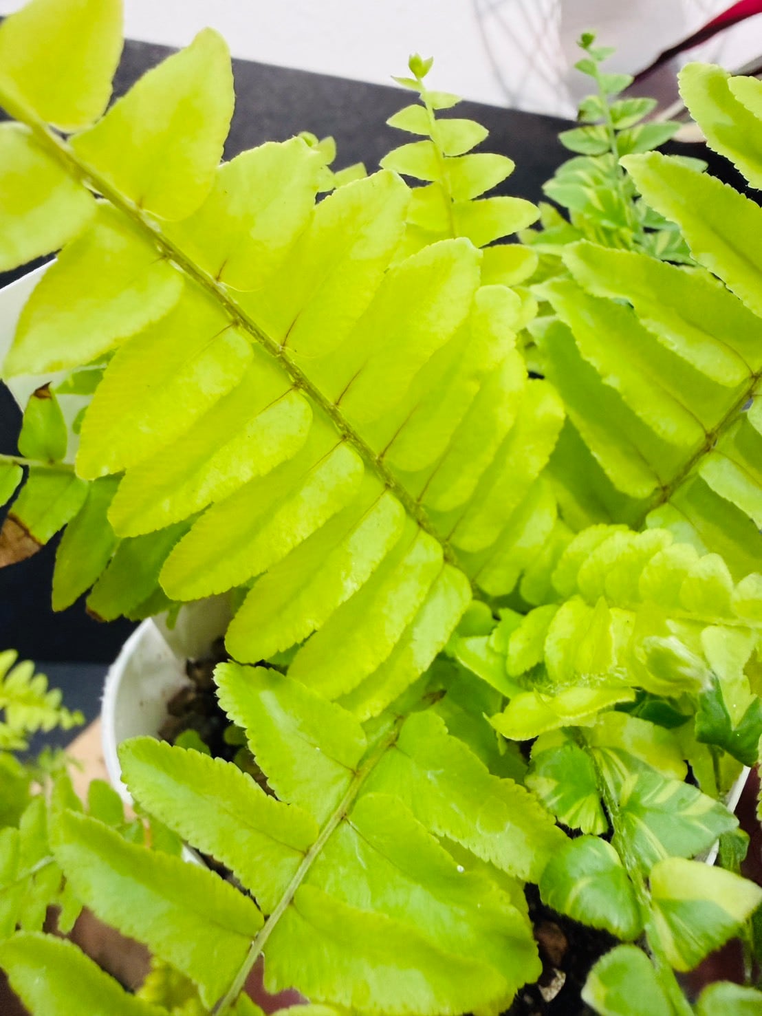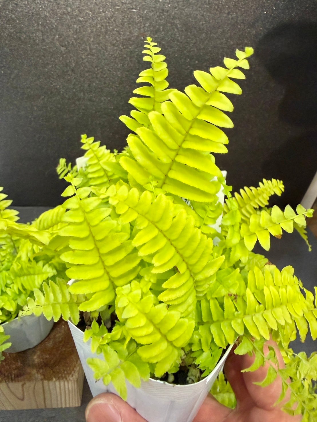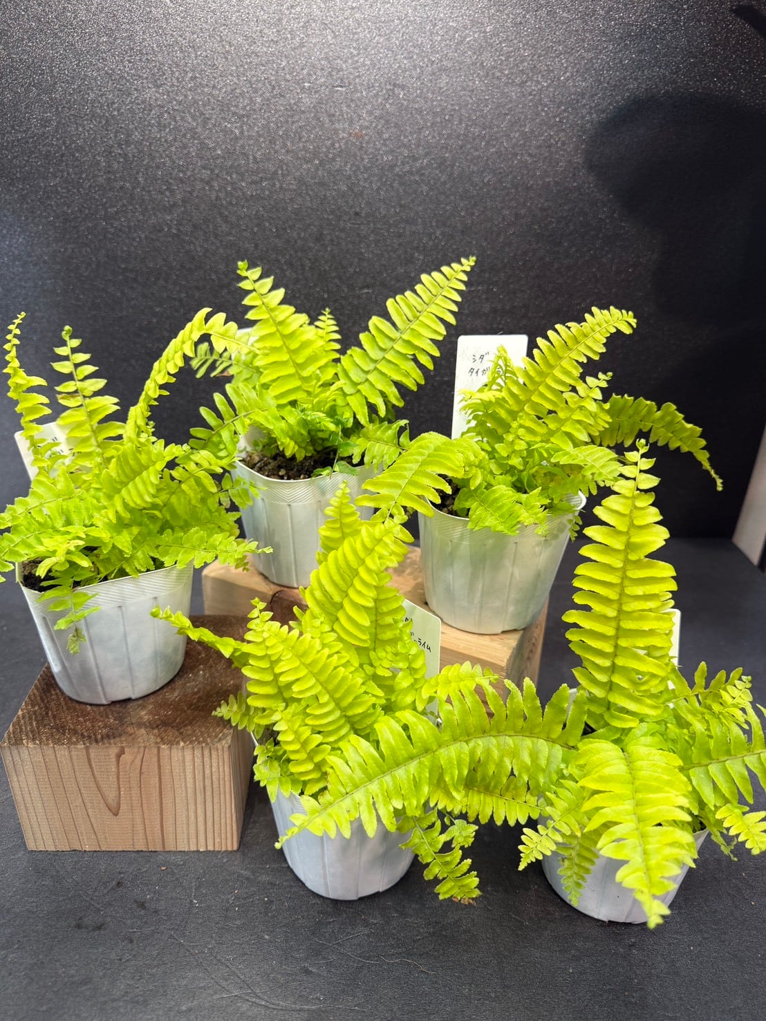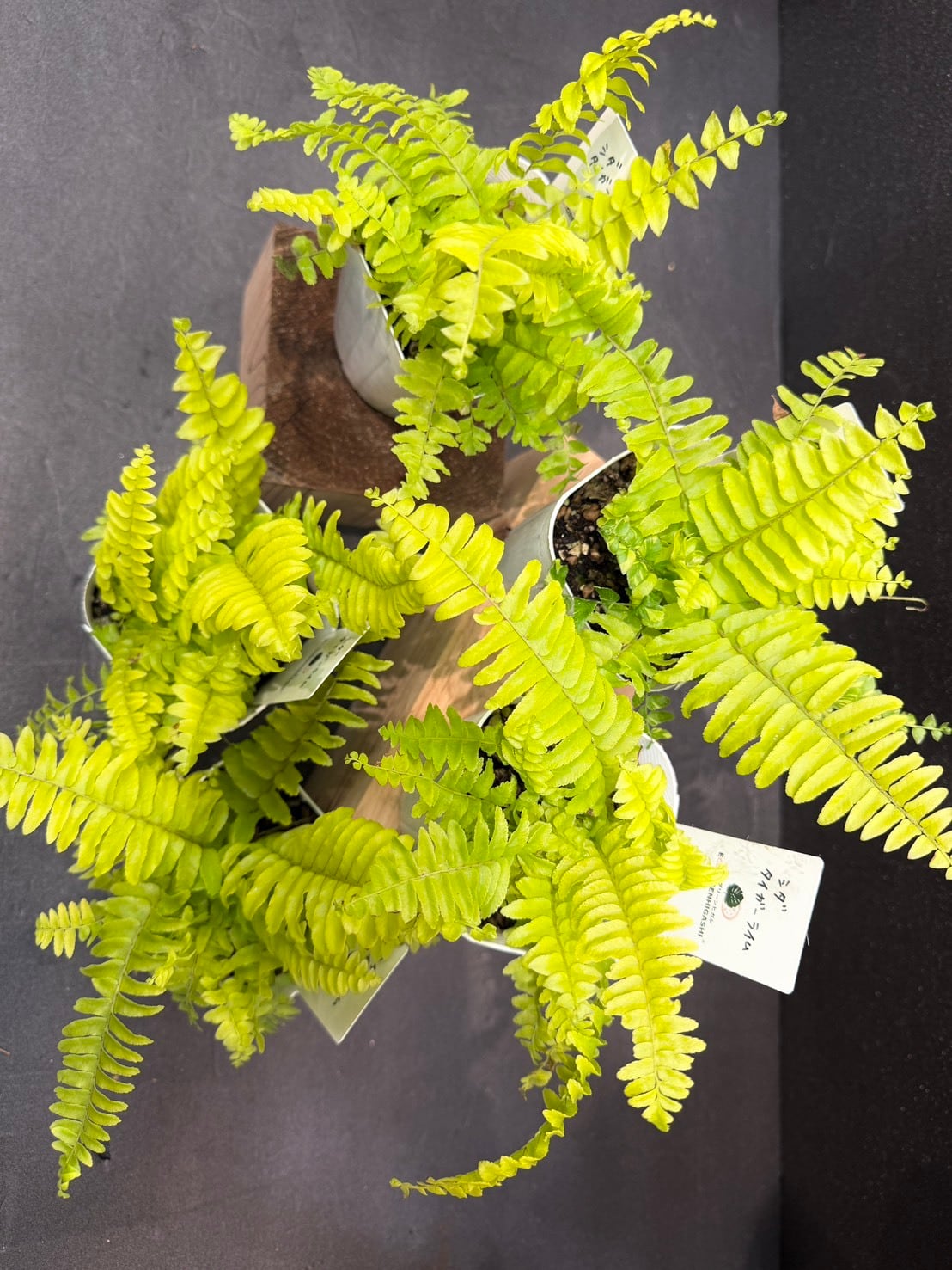 ネフロレピス・タイガーライムは、ライムグリーンと緑色のコントラストが美しいマーブル模様の葉を持つシダ植物です。
