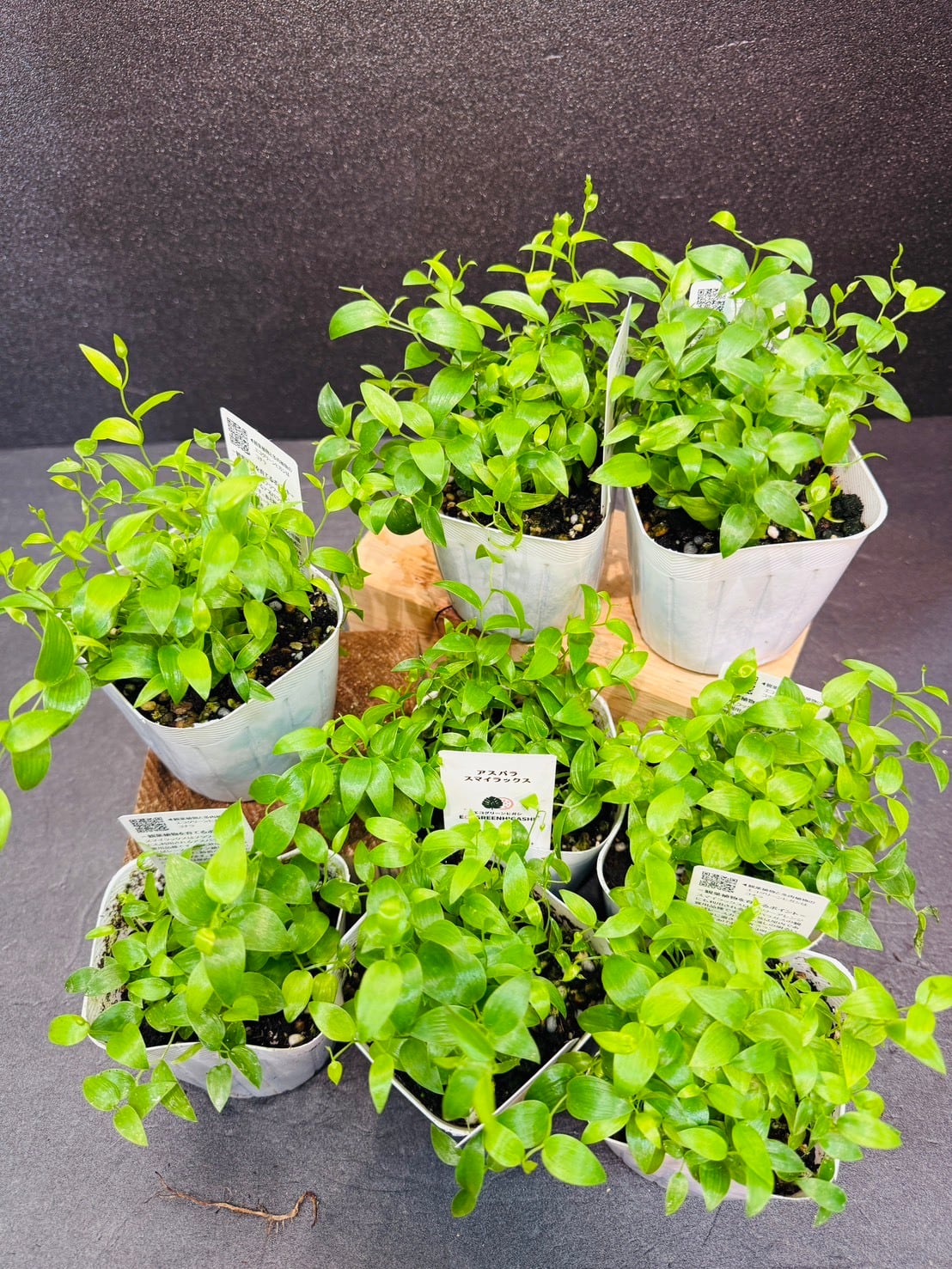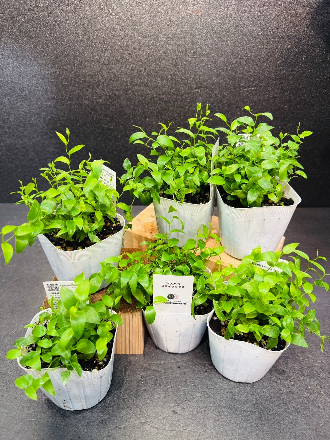 アスパラガス・スマイラックスは、南アフリカ原産のユリ科の観葉植物で、丸い葉っぱが特徴です。
