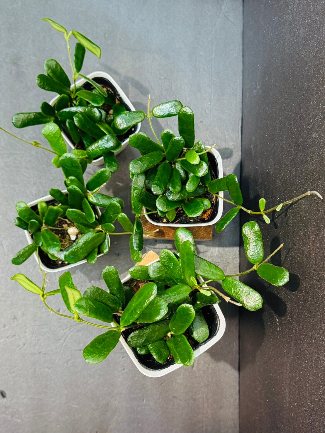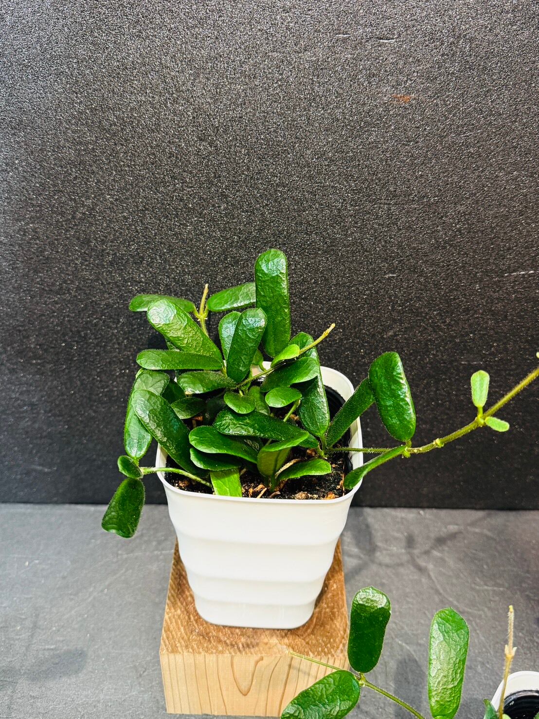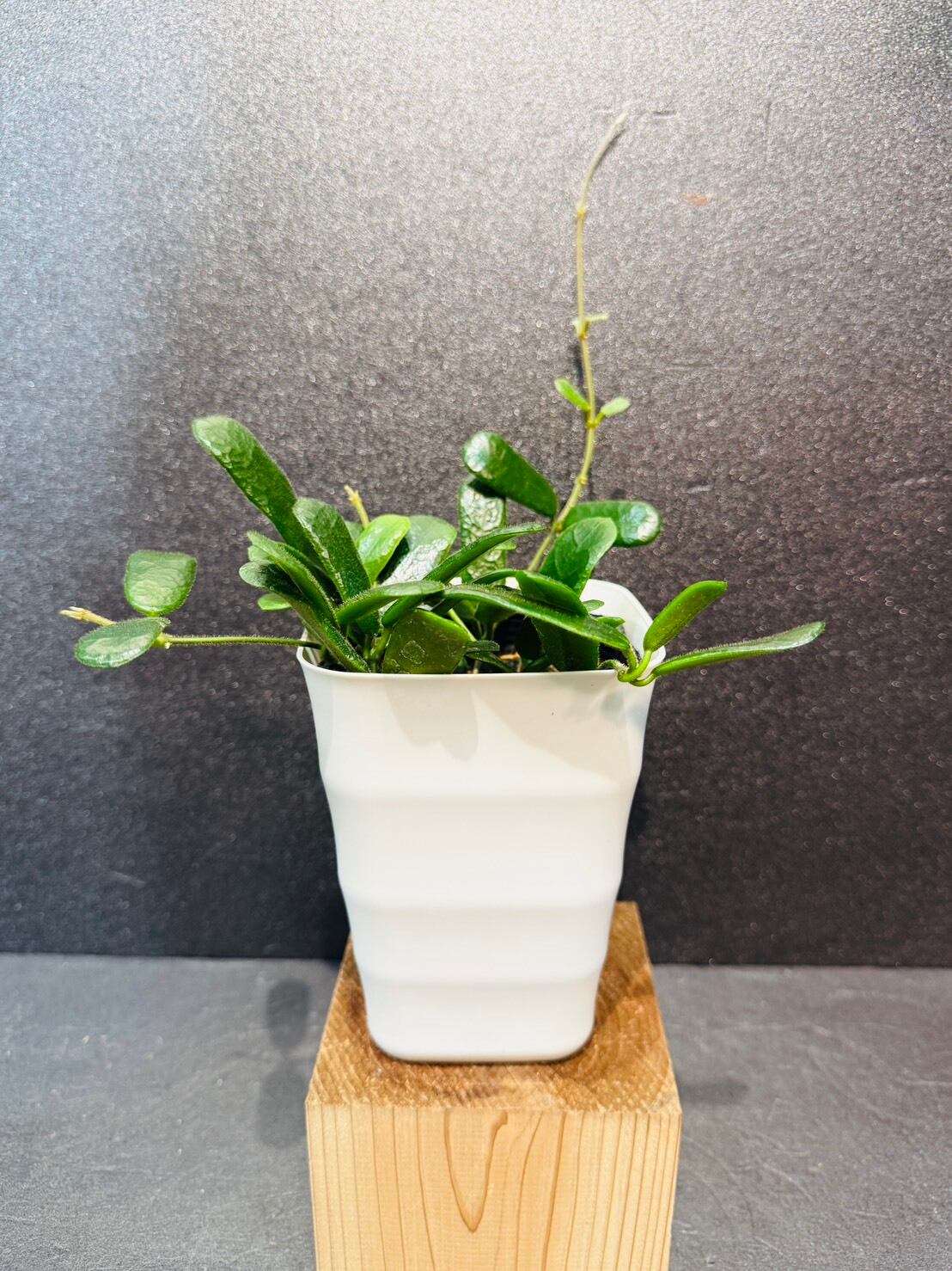 ホヤ・ロツンディフォリアは濃緑色で照りが美しく、皮革状の固く四角い葉が非常に特徴的なホヤの仲間です。