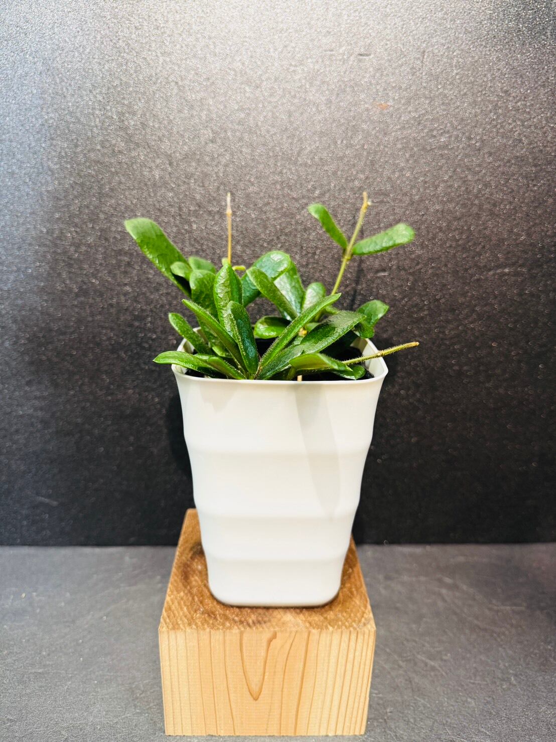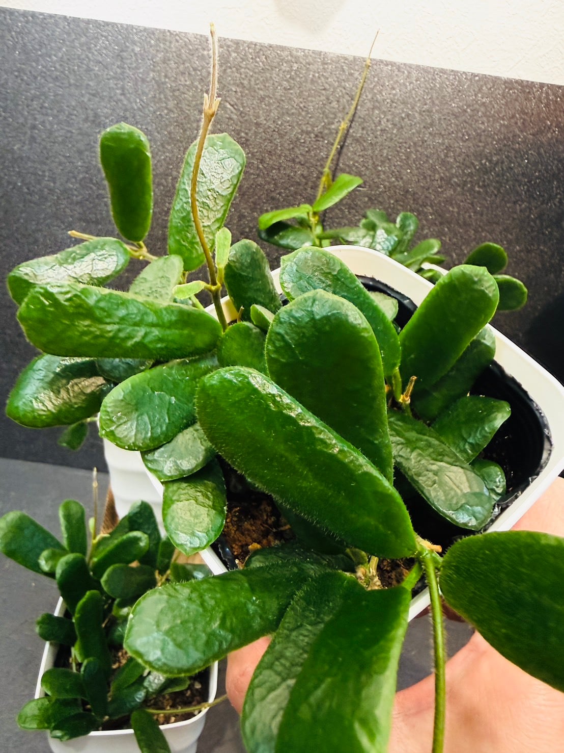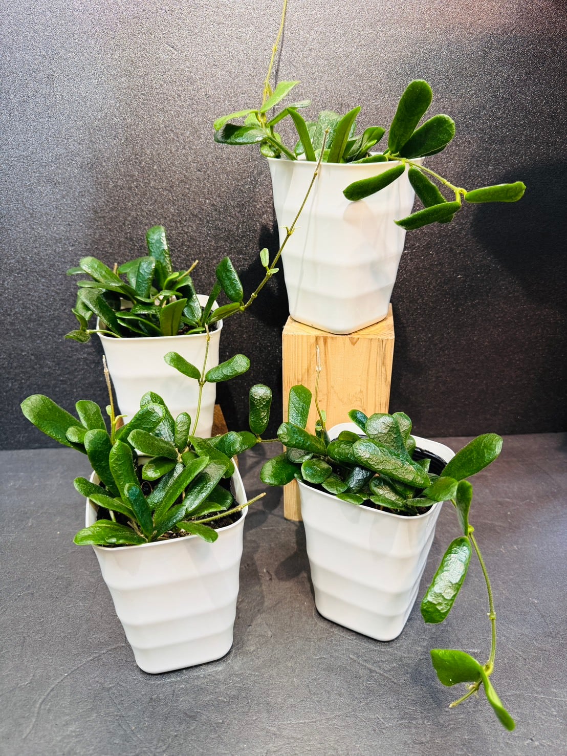 ホヤ・ロツンディフォリアは濃緑色で照りが美しく、皮革状の固く四角い葉が非常に特徴的なホヤの仲間です。