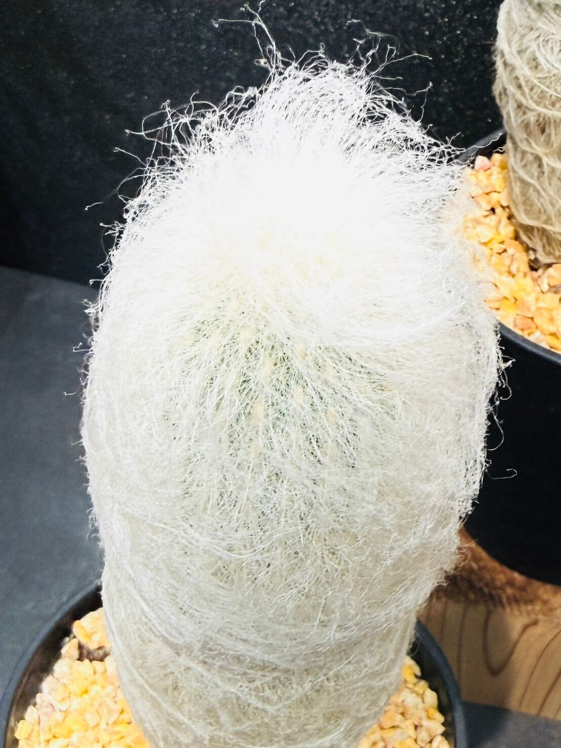 ペルーやエクアドルなどのアンデス高地が原産で、白い毛が肌を包み込み、その中から淡い黄色の針状の刺が突き出します。