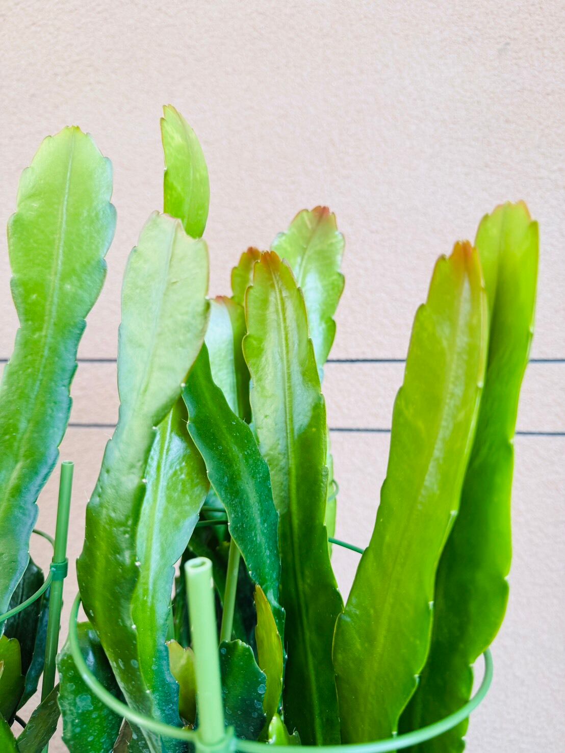 茎は平たく葉のような形状をしており、多肉質でやや厚みがあります。