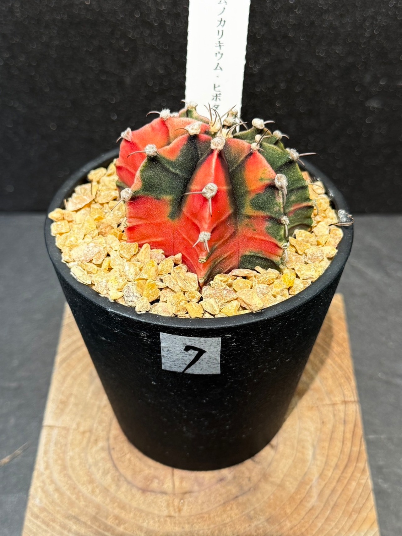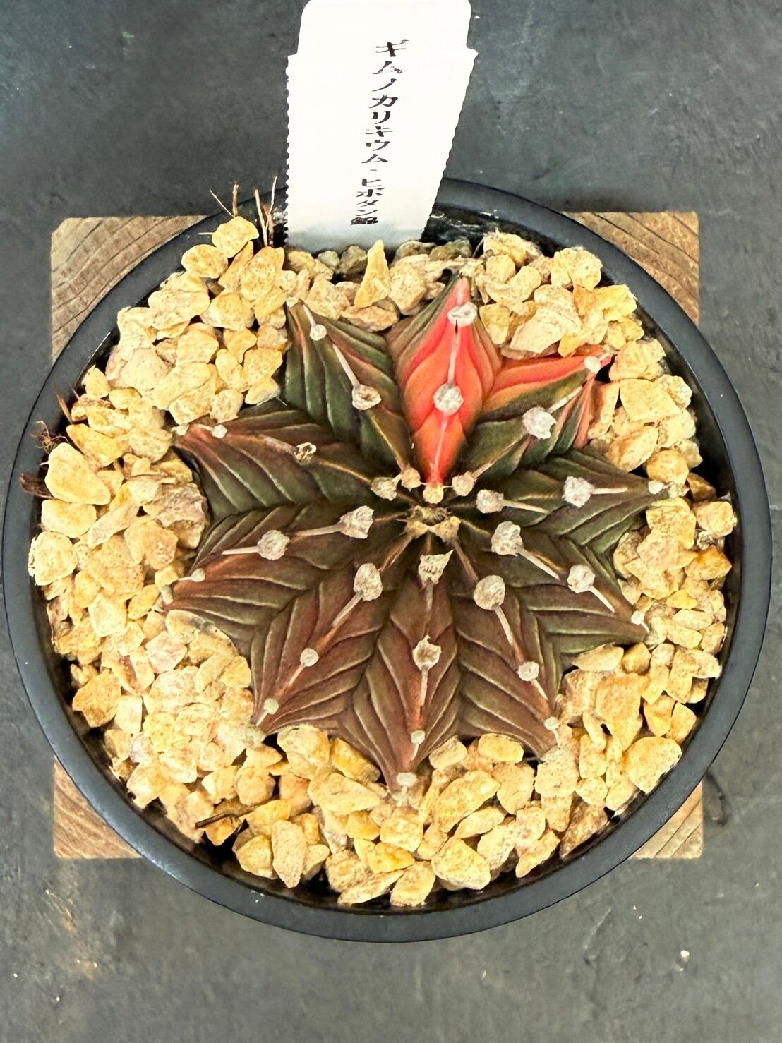 緋牡丹錦(ひぼたんにしき)は、サボテン科ギムノカリキウム属の球状サボテンの一種で、瑞雲丸(ずいうんまる)という球状サボテンの斑入り種です。