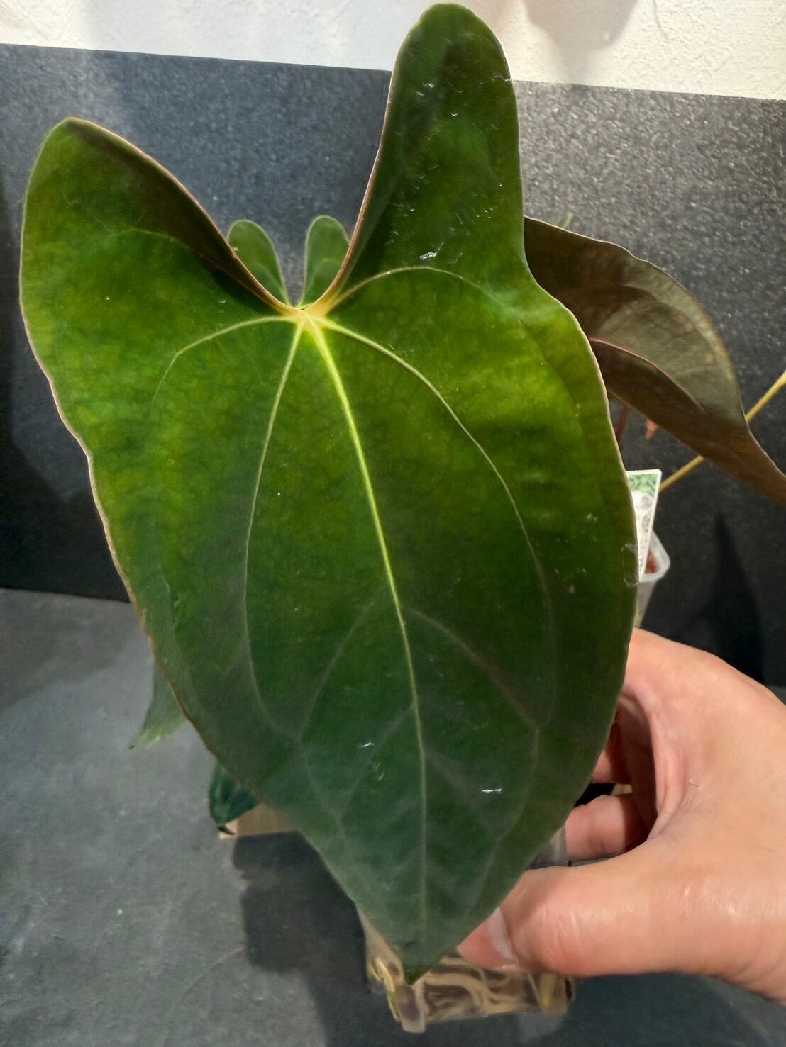 アンスリウム・パピリラミナム(Anthurium papillilaminum)は、 ベルベット(ビロード)のような、滑らかで光沢のある深い緑の葉面をしています。