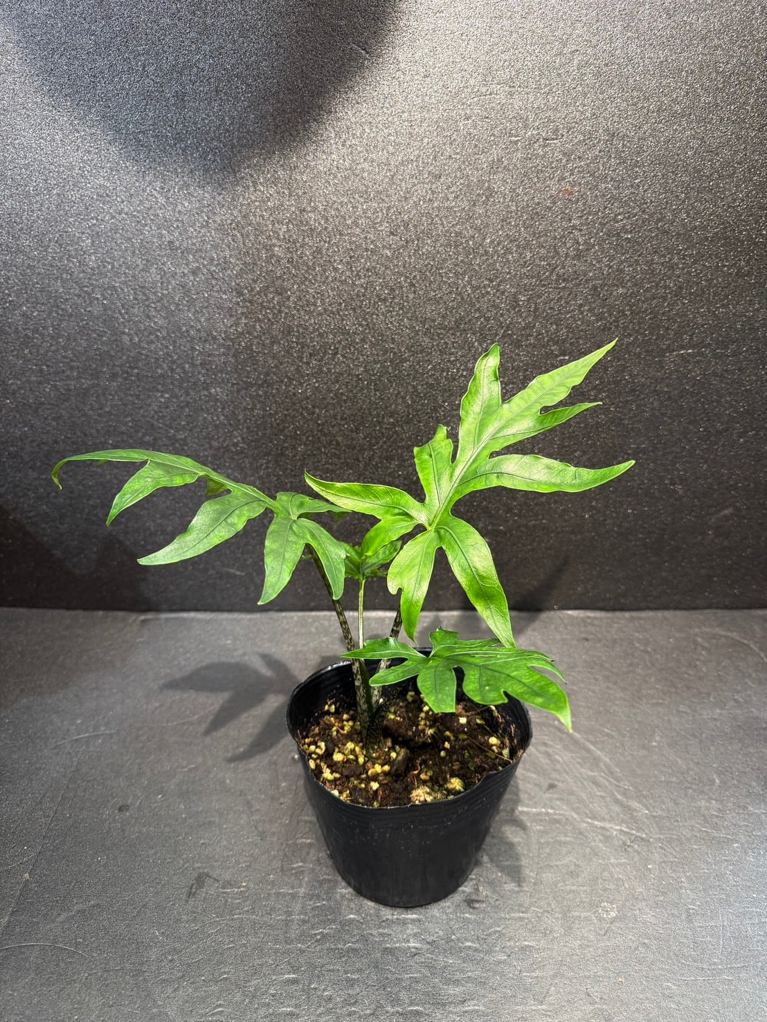 切れ込みの深い濃緑色の葉と、ゼブラ柄(縞模様)の葉柄が特徴で、フィロデンドロンのようなエキゾチックな見た目が特徴です。