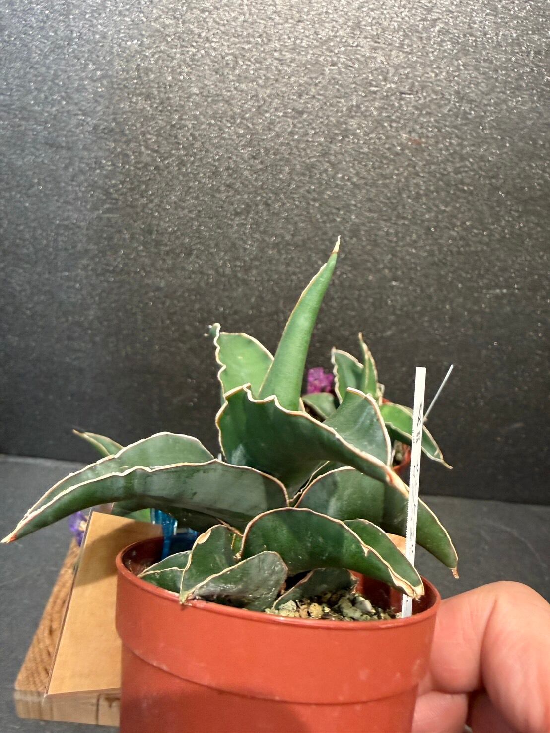 サンスベリア・ロブスタブルーは、ブルーグレイの肉厚な葉が特徴的な、流通量の少ない希少なサンスベリアです。