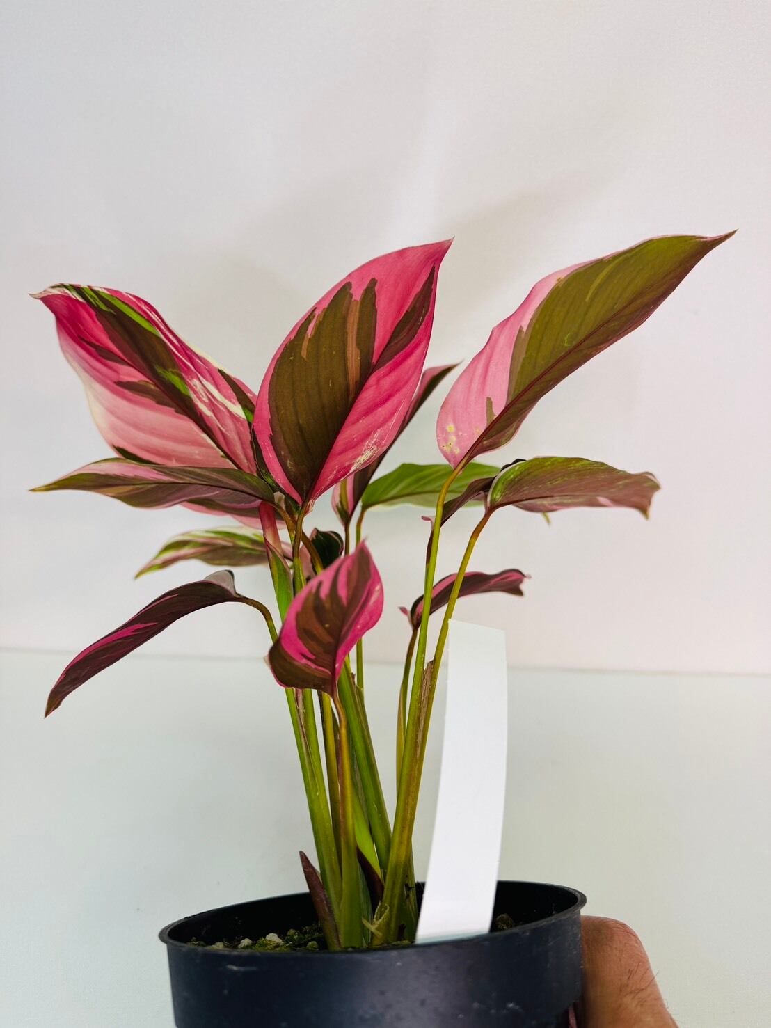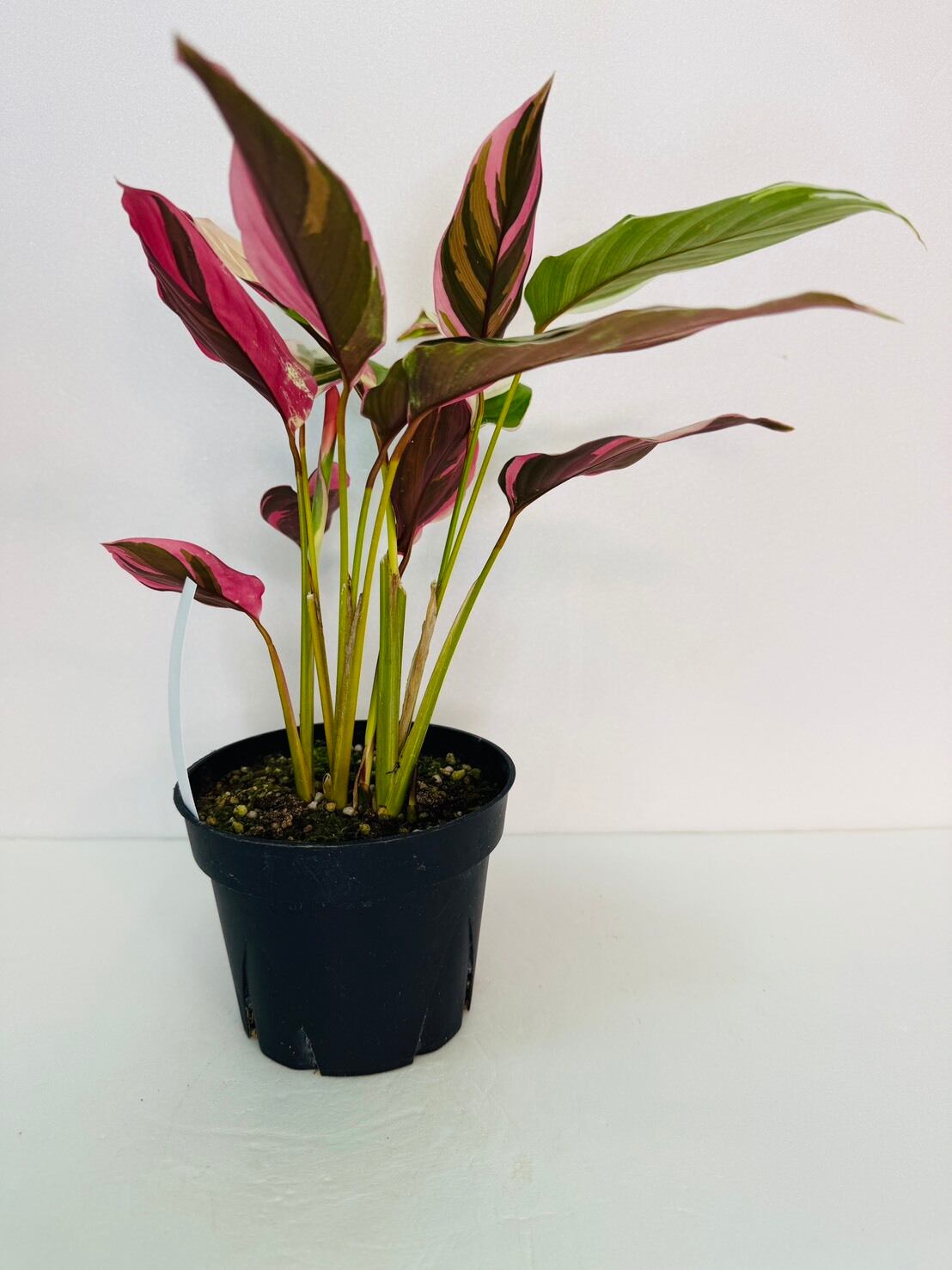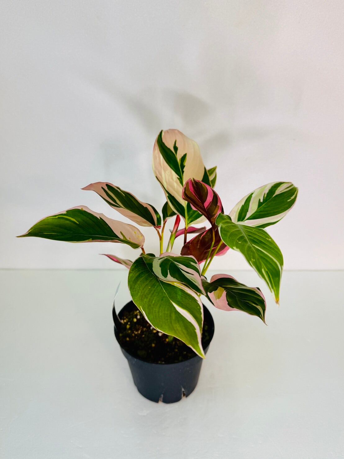 カラテア・ウォーターカラー(Calathea Watercolor)は、白とグリーンのコントラストが水彩画のように繊細で、葉柄にほんのりピンクが混ざる非常に美しい熱帯観葉植物です。