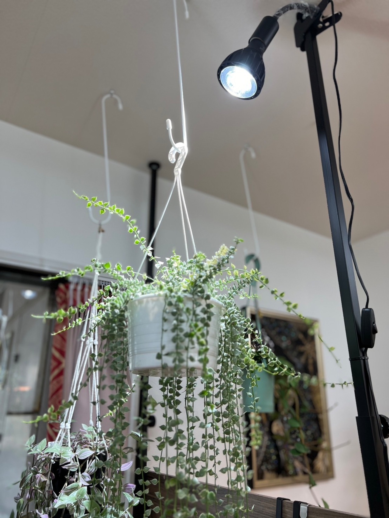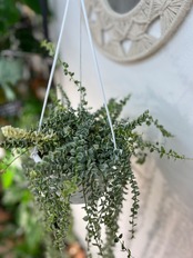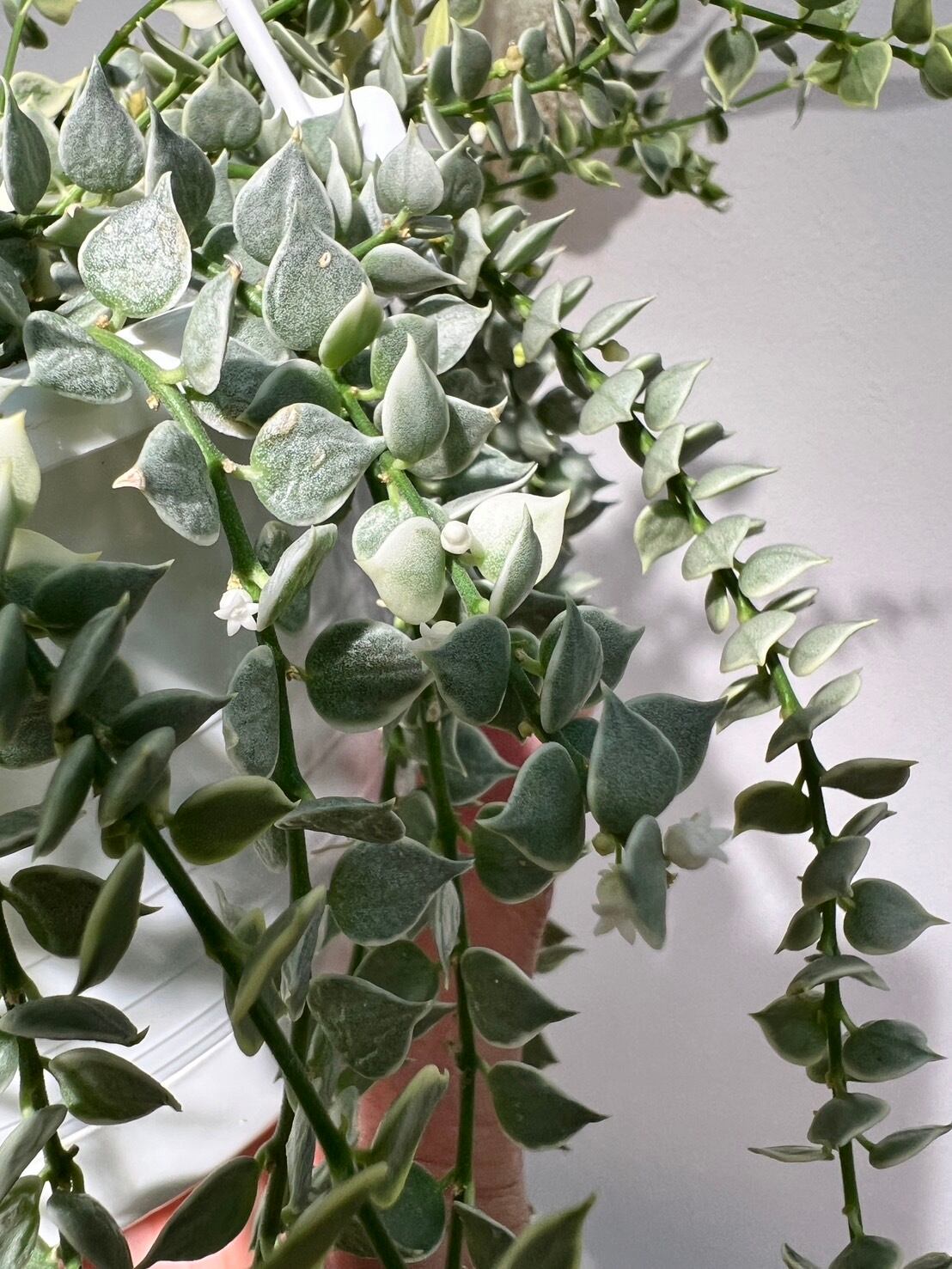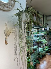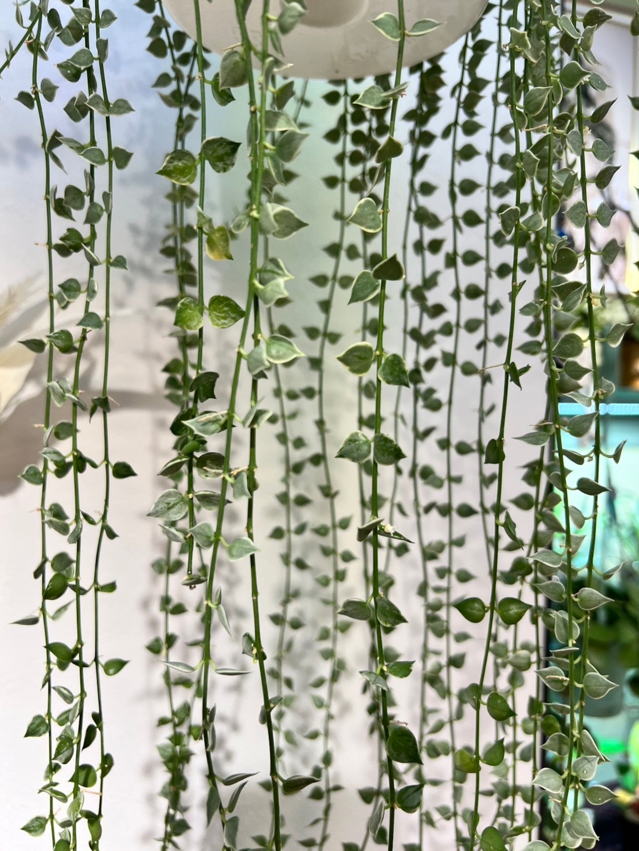 ディスキディア・ミリオンハートは、葉の形がハート形で多肉質な植物です。葉の大きさが非常に小さく、ツル性に成長する習慣などにありインテリア性の高い植物です。6月~8月に白い小さい鈴のような花を咲かせてくれます。耐陰性が強く乾燥にも強く室内で育てやすい品種で初心者の方にもおすすめです。