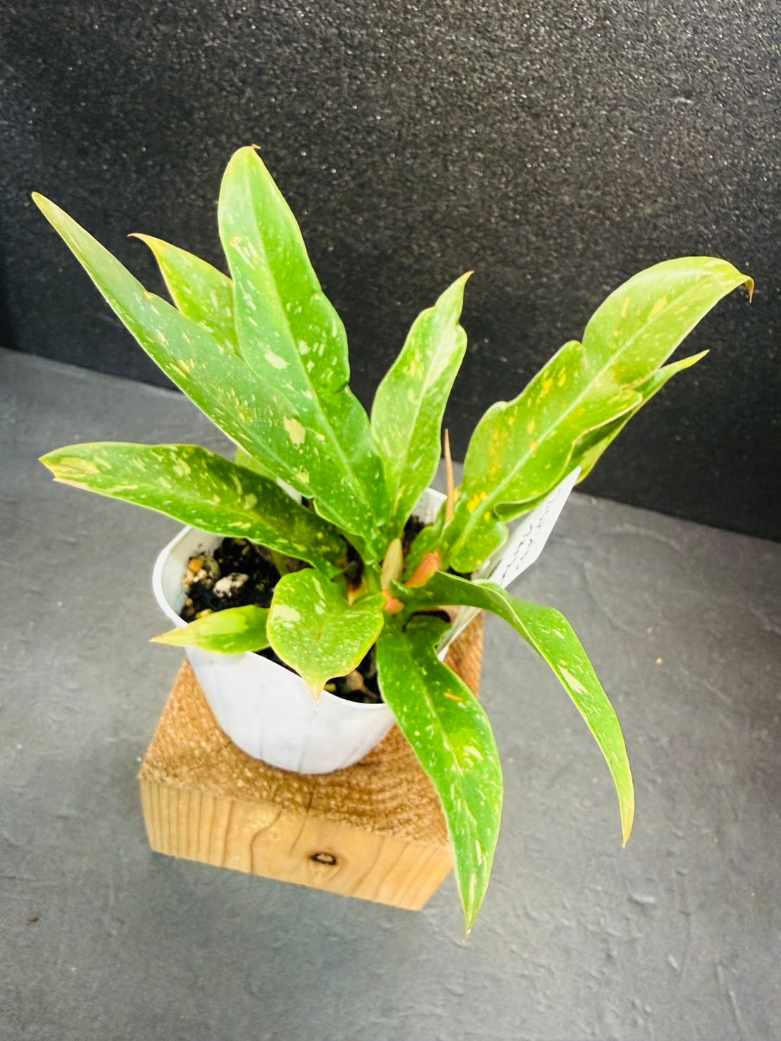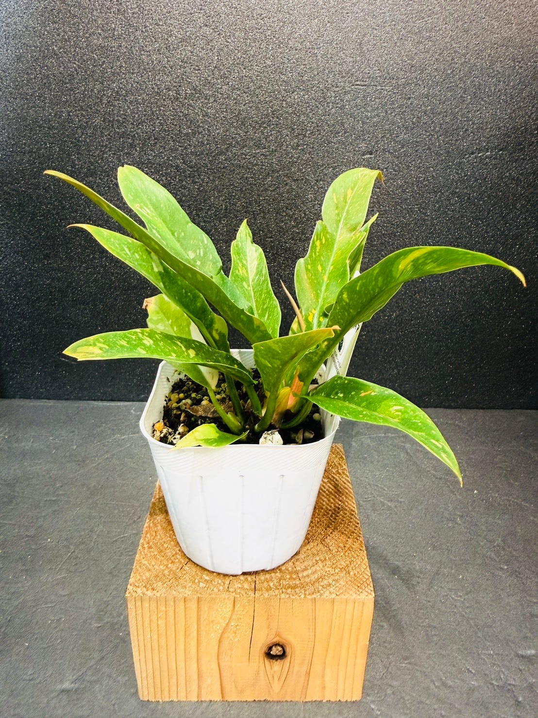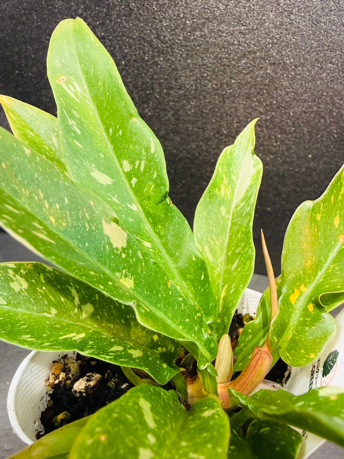 一株に白斑や散り斑の葉がありとても美しい姿をしています。